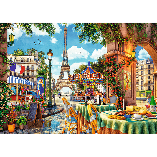 1000 Piece Jigsaw Puzzles, Parisian Morning, Puzzle of Paris France, Colorful Eiffel Tower and Café Puzzle, Adult Puzzles, Trefl 10622