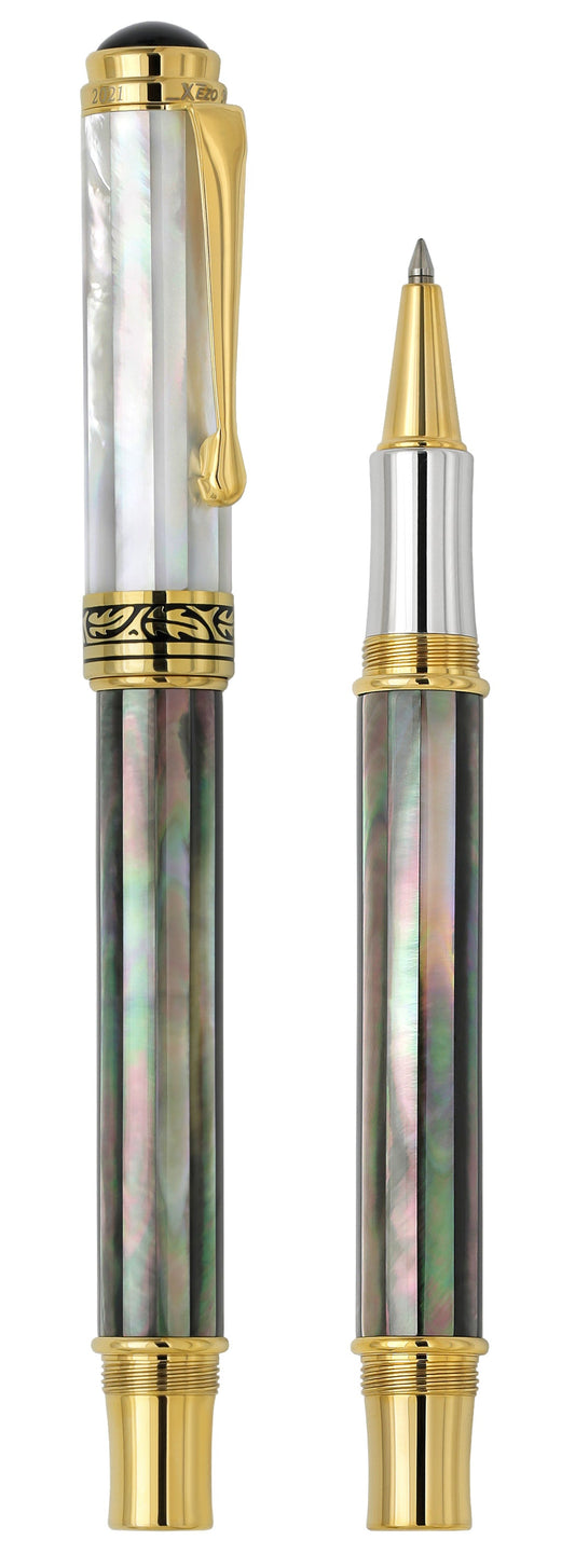 Xezo Maestro® Black and White Mother of Pearl Rollerball Pen - 18K Gold Plated