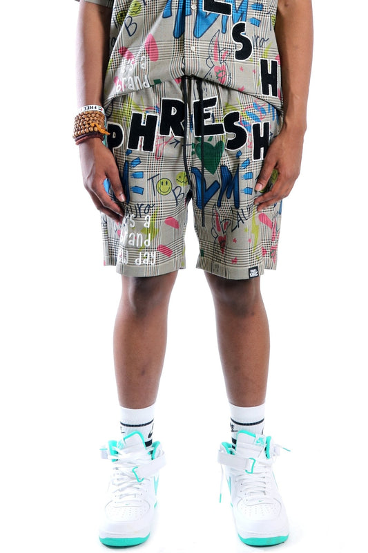 Rans L.T.K. Men's premium Short Sleeve Plaid button down shirt with hand sketch drawing pop art