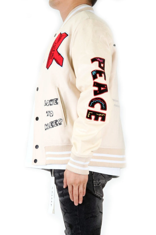 VUE Men's Melton Body with Faux Leather Sleeve Varsity Jacket
