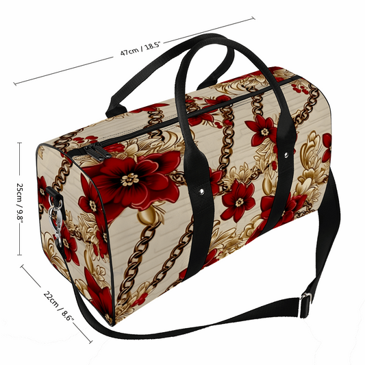 Black Women Flower Tan PU Leather Travel Bag Gym Bag Duffel Bags