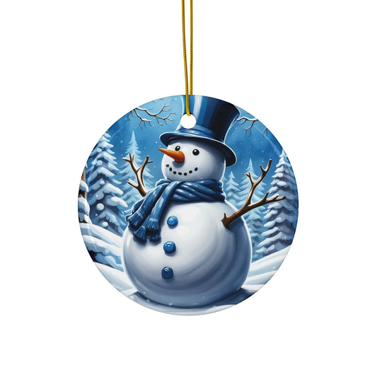 Blue Snowman Christmas Series #1, Holiday Ceramic Ornament,