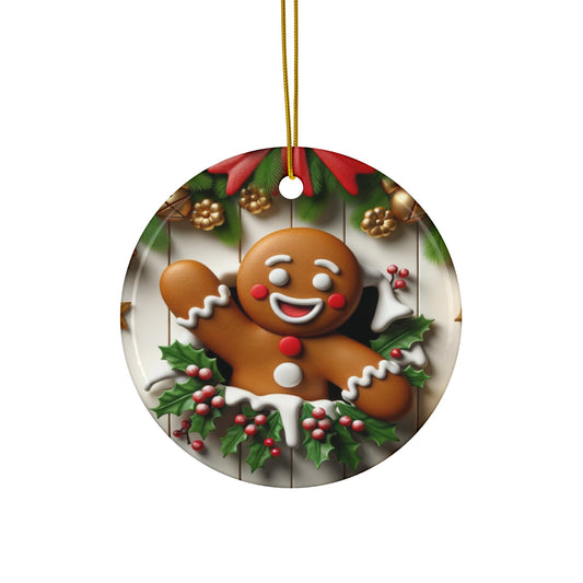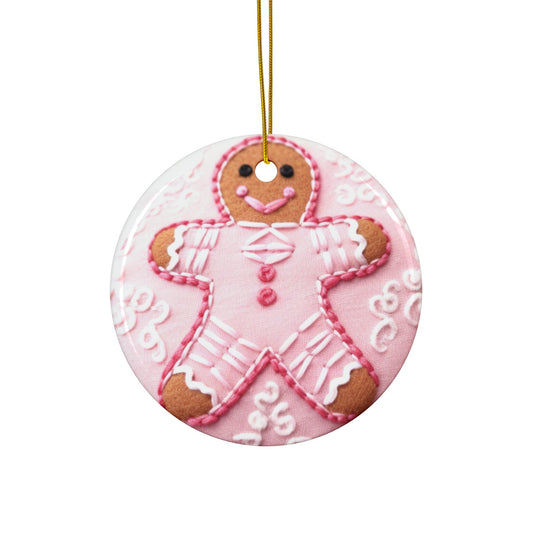 3D Embroidered Pink Christmas Gingerbread #2 Ceramic Ornament