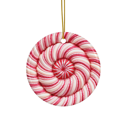 3D Embroidered Pink Christmas Swirled Candy Cane Ceramic Ornament