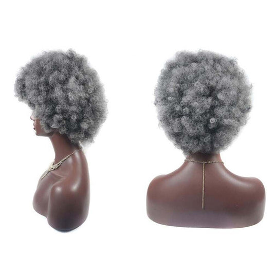 Grey Short Afro Curly Hair Wigs Women Large Fluffy Synthetic Hair Short Full Wig for Party and Daily
