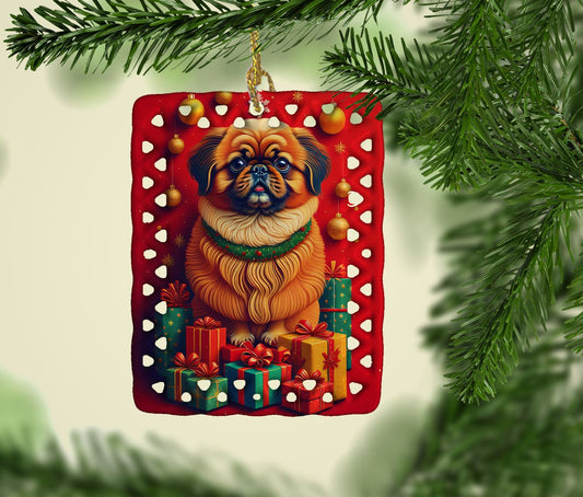 Pekingese Holiday Christmas Porcelain Ornament Christmas Tree Hanging Decorations for Home Christmas Holiday, Rectangle, Gift, Multicolor