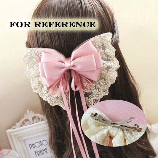 Green Vintage Lace Large Bowknot French Barrettes Handmade Chiffon Hair Clip with Ribbon