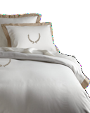 Sham Embroidery Elegant Liaison Collection Luxembourg Shams are featured in a White Cotton body with a Contrast Flange available in Cafe, Navy & Onyx.