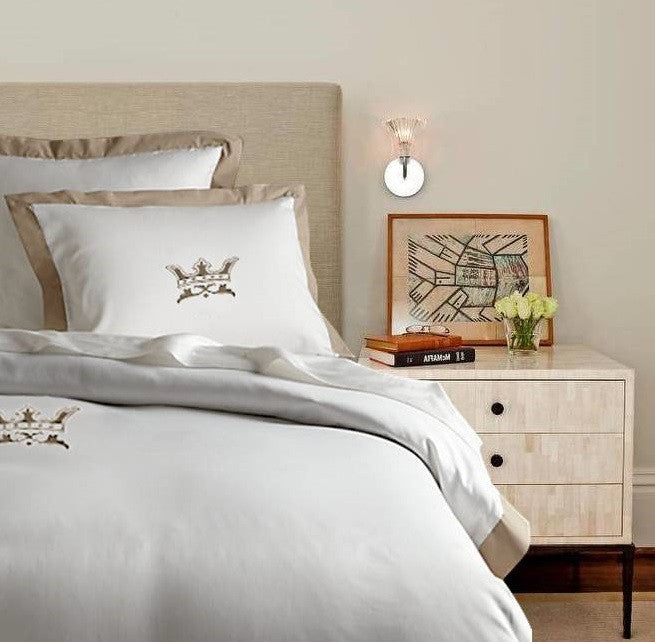 Sham Embroidery elegant Liaison Collection Belladonna Shams are featured in a White Cotton body with a Contrast Flange available in Cafe, Navy & Onyx.