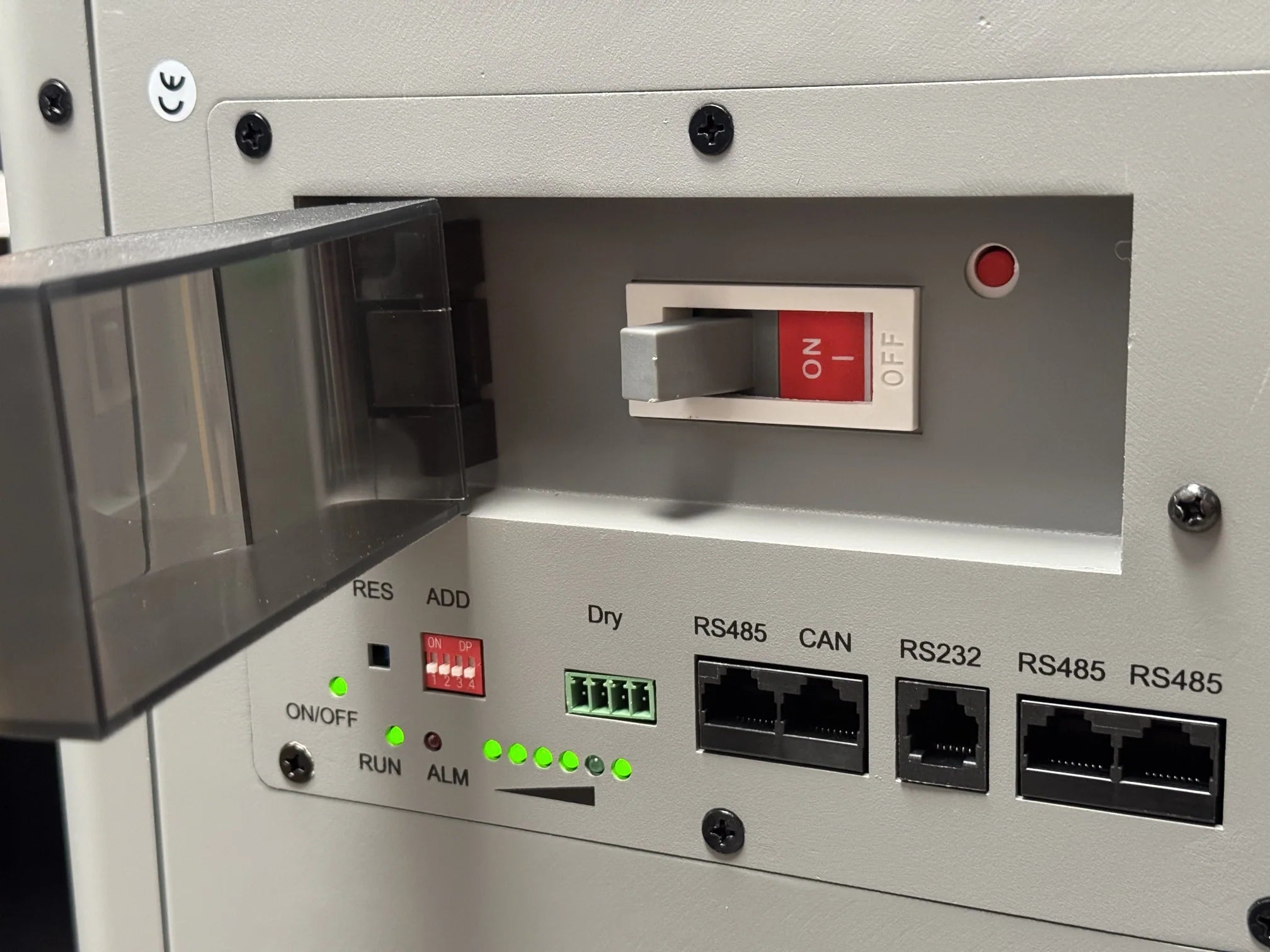 You receive a single box on a pallet at your doorstep or business, cut open the box, stand the unit up, and roll it to your location. You flip the breaker switch, press and hold the front button to turn on the BMS, and you're ready to go.