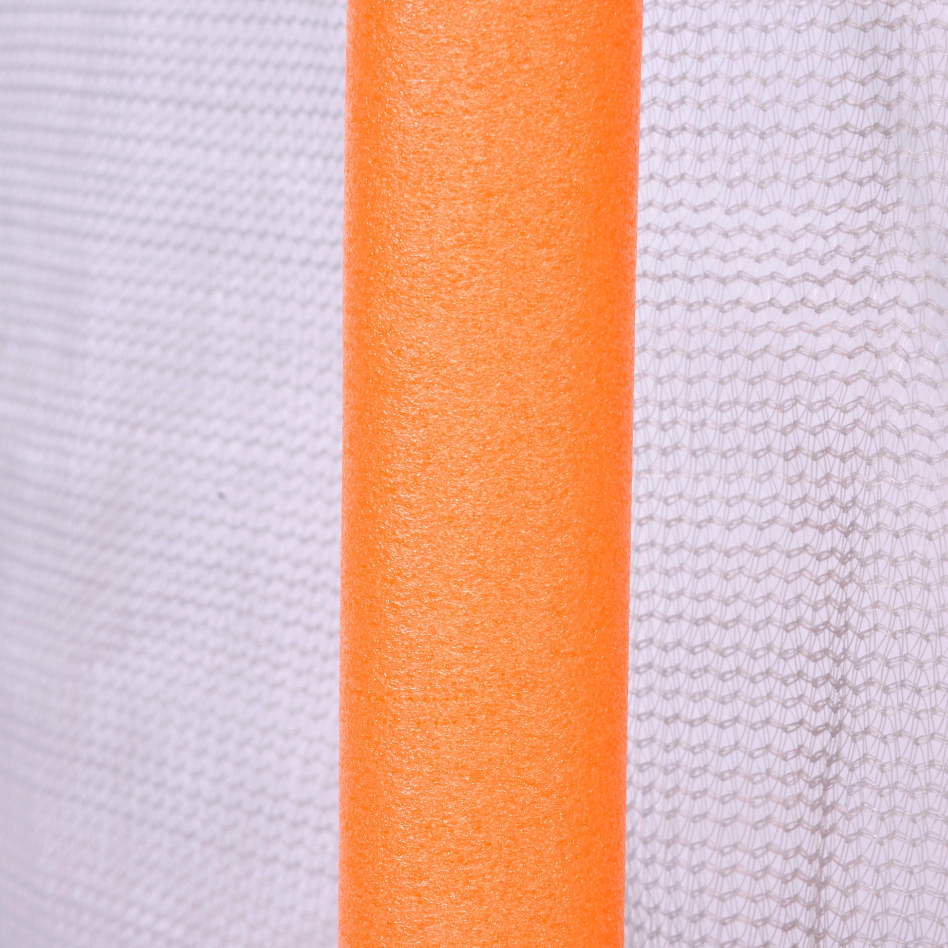 • SAFE & DURABLE - Large-sized galvanized steel structure, foam-padded poles and safety net ensure safety while jumping in the trampoline. Reinforced T-sockets stabilize the upper enclosure frame, high-quality pad protector is sewn to the mat and covers the safety springs, no need to worry your kids feet get stuck while playing.
