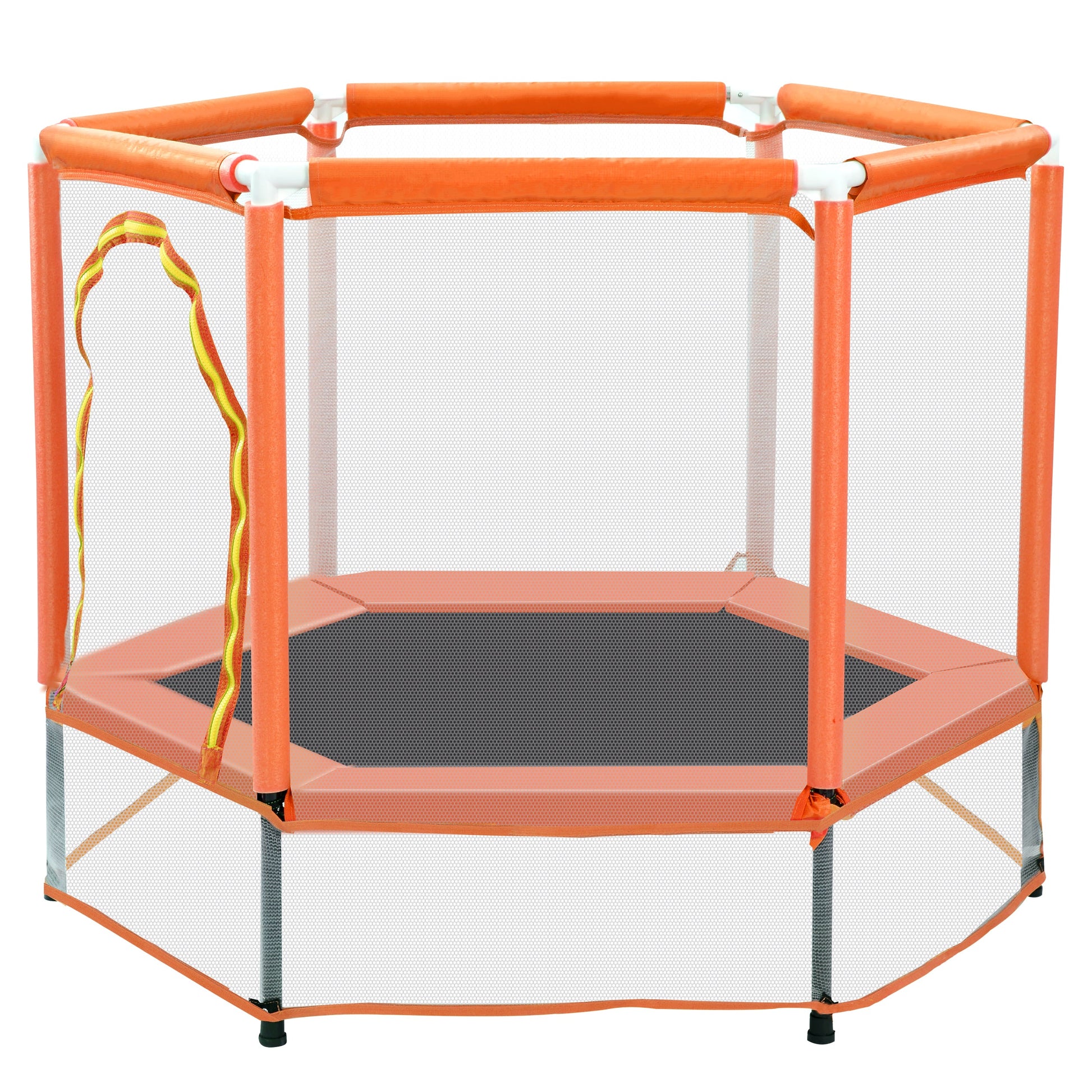 55'' Toddlers Trampoline with Safety Enclosure Net and Balls, Indoor Outdoor Mini Trampoline for Kids