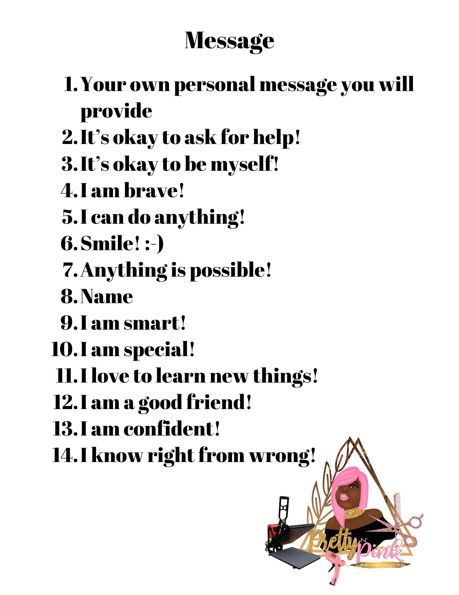 Customizable affirmations on each pencil
