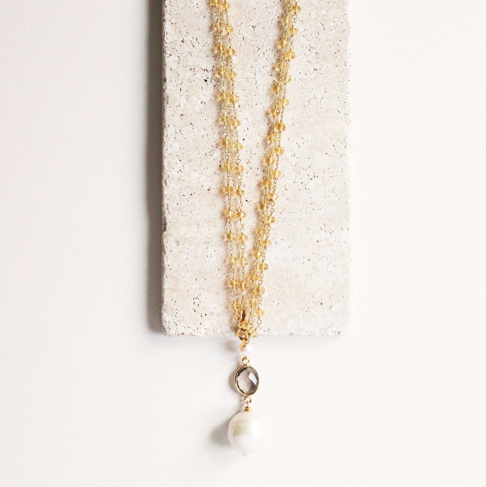 Wear it long or double it up for a shorter style. Necklace can be worn at it's full length of 34", or can be converted to a double strand 16" pendant. To convert the chain, just use the clasp to attach to the ring above the bezel stone.