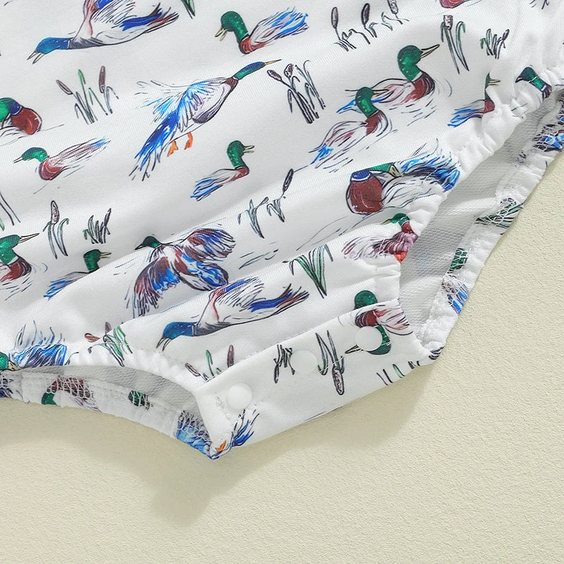 Baby Boys Fall Bodysuit Duck Print Long Sleeve Crewneck Jumpsuit Fall Spring