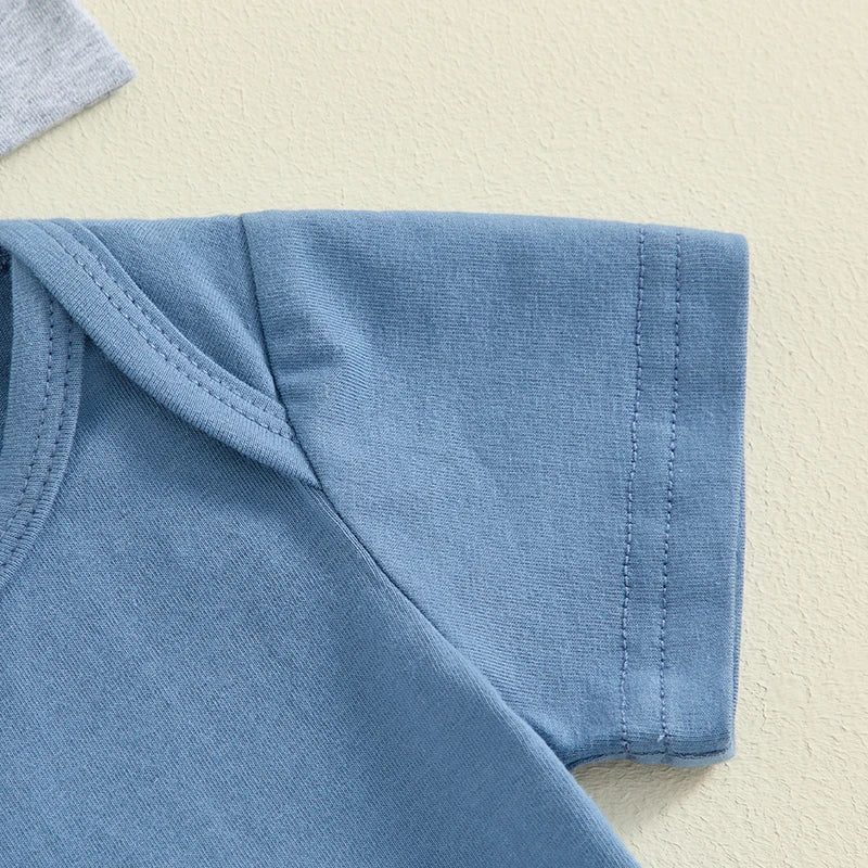 • Baby Girl Boy 3Pcs Hi I'm New Here Outfit Letter Embroidery Short Sleeve Romper Elastic Waist Long Pants Hat Clothes Set