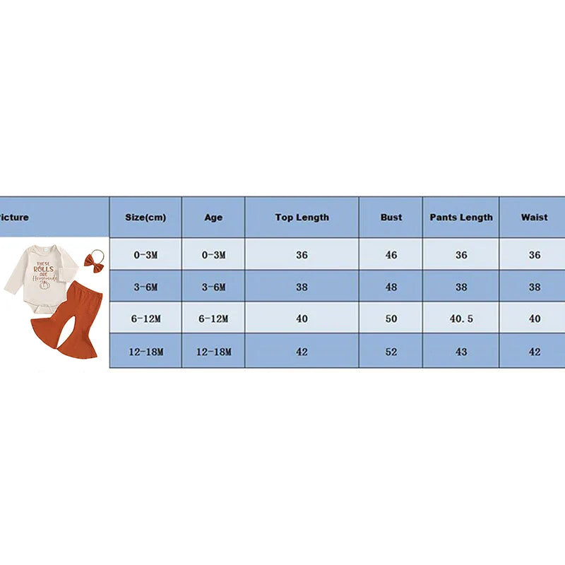6-12M Tops Length: 15.75 Bust: 19.68 Pants Length: 15.94 Waist: 15.75 Advised Age: 6-12 Months
