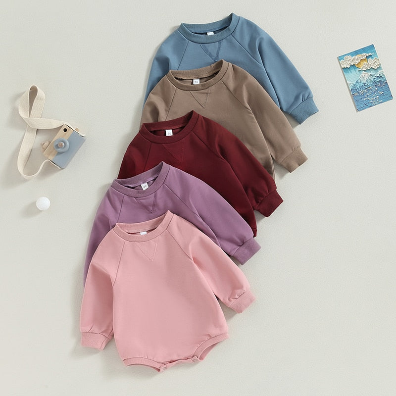Baby Girls Boys Bodysuit Solid Crew Neck Long Sleeve Jumpsuits Fall Clothes Romper