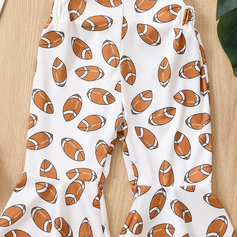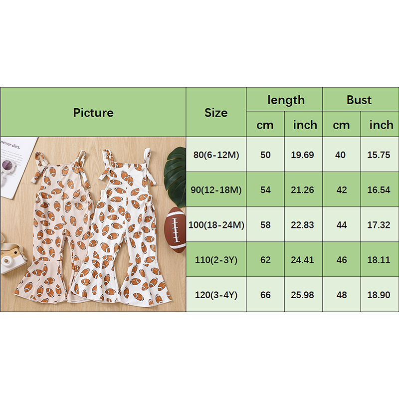 Baby Toddler Girl Jumpsuit Football Print Romper Bell Bottom Tank Romper