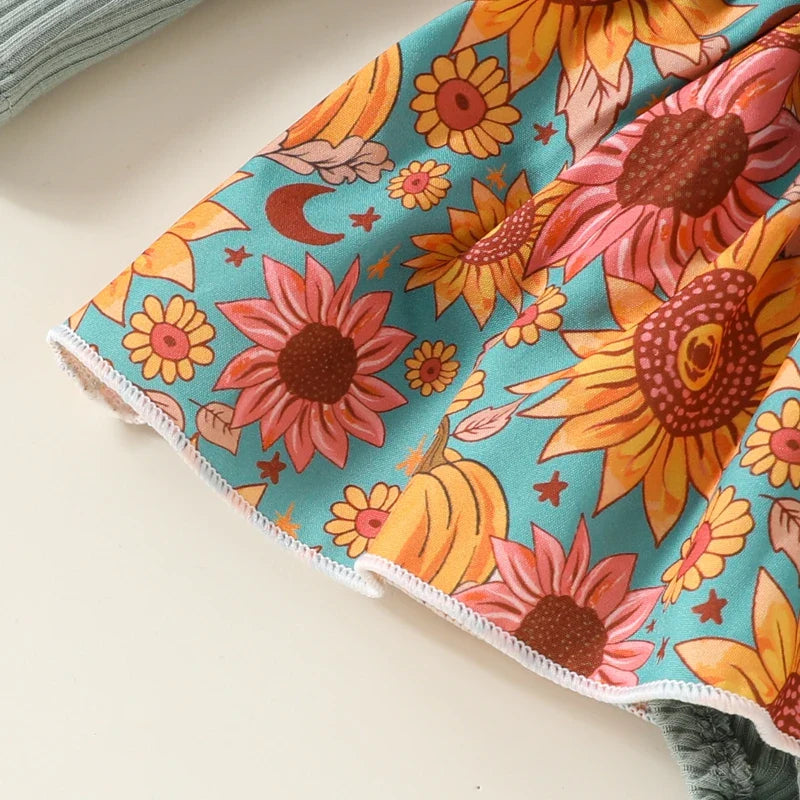 Pattern: Flower Print, Ruffle Trim, 3D Bow