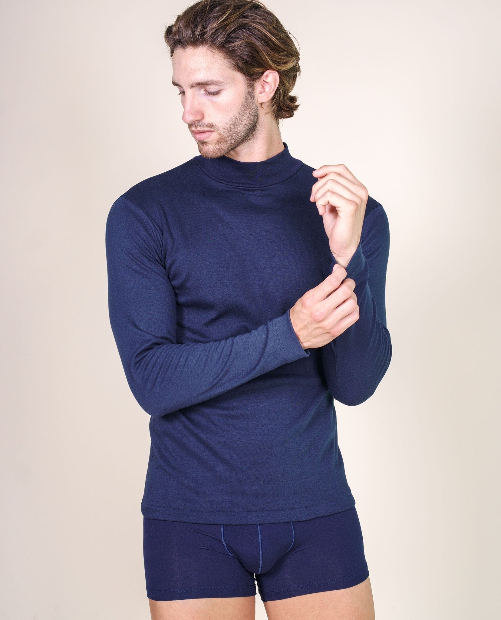 • EXTRA-SOFT Men's turtleneck shirt with long sleeves, made of 100% Premium Quality Brushed Fleece Cotton. Brushed Cotton is a lovely fabric, has a super soft texture that provides warmth, comfort, and luxury.
