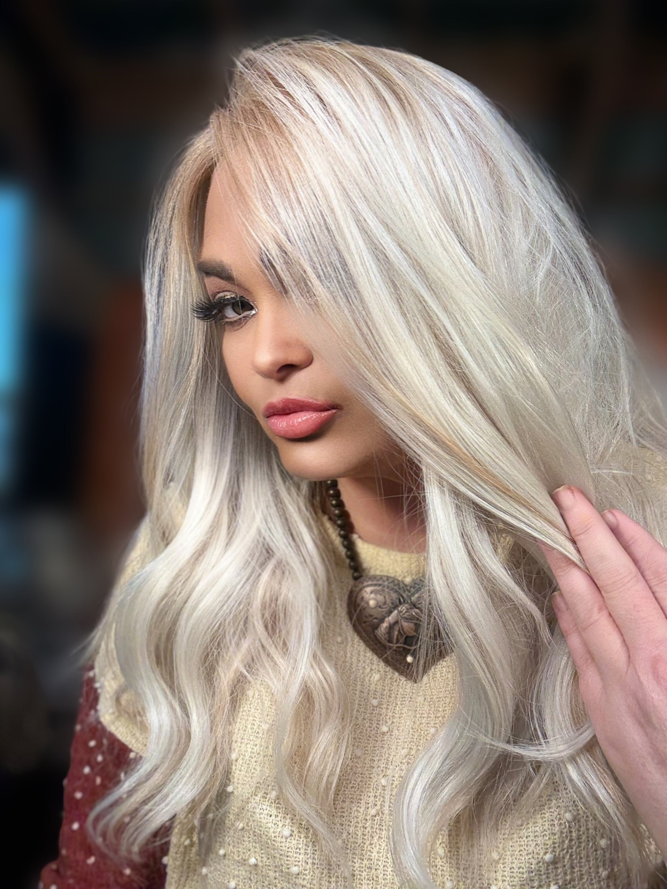 The BAY wig features a 13x4 lace front with a versatile free part for natural styling options. Made from premium heat-resistant synthetic fiber, it boasts 24 inches of loose curls in a stunning natural blonde highlighted with lowlights for depth. Designed with adjustable straps and a standard cap size, it ensures a comfortable, secure fit. Enhanced with custom AquaLocks technology, this wig offers durability and a realistic appearance for expert-level wear.