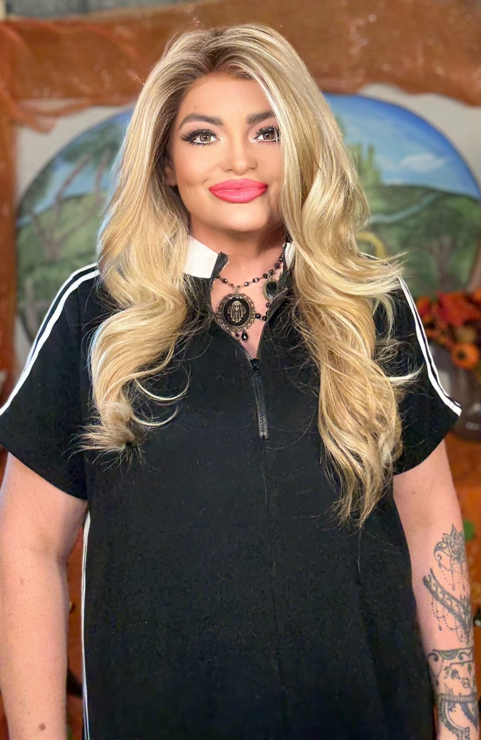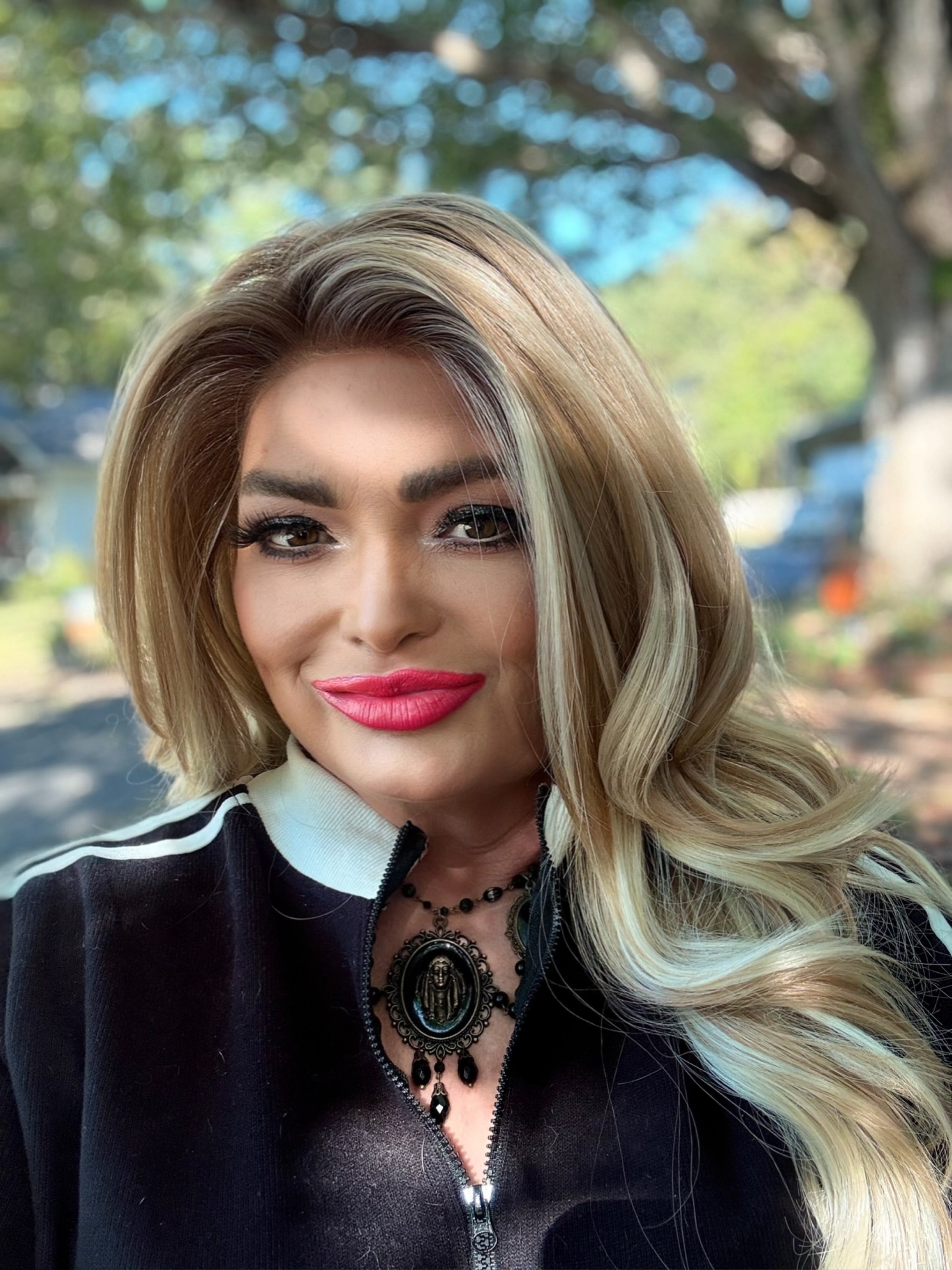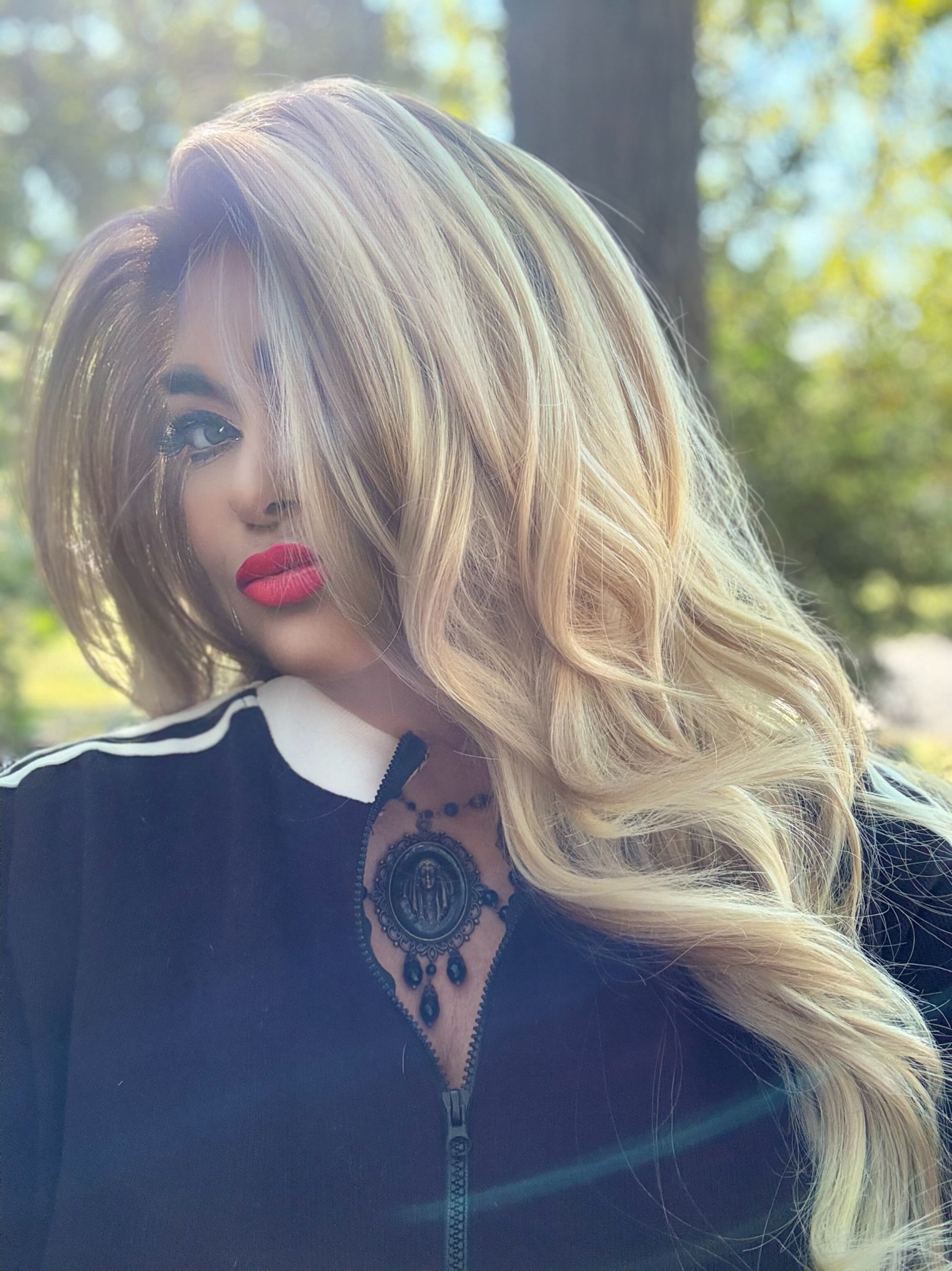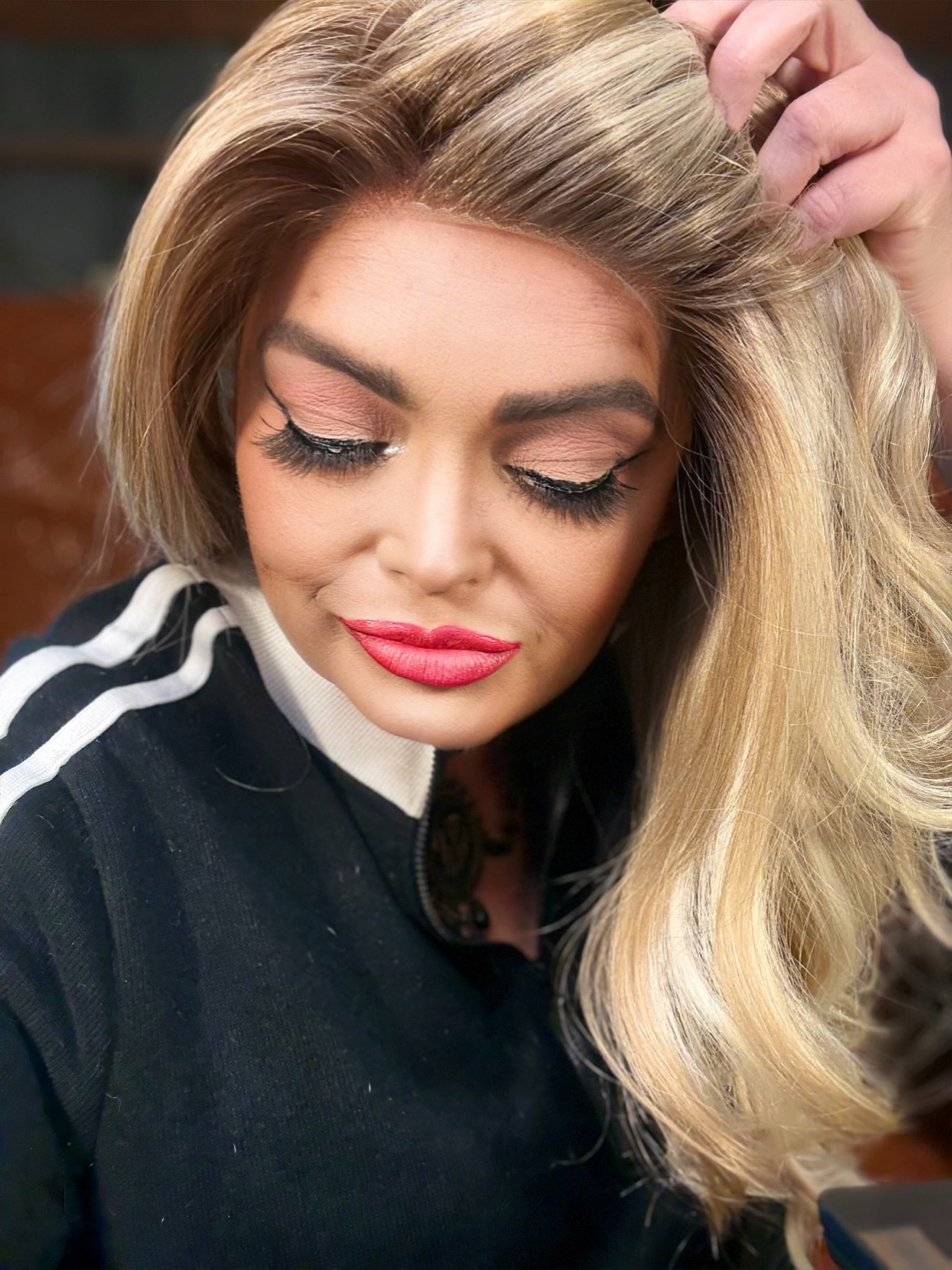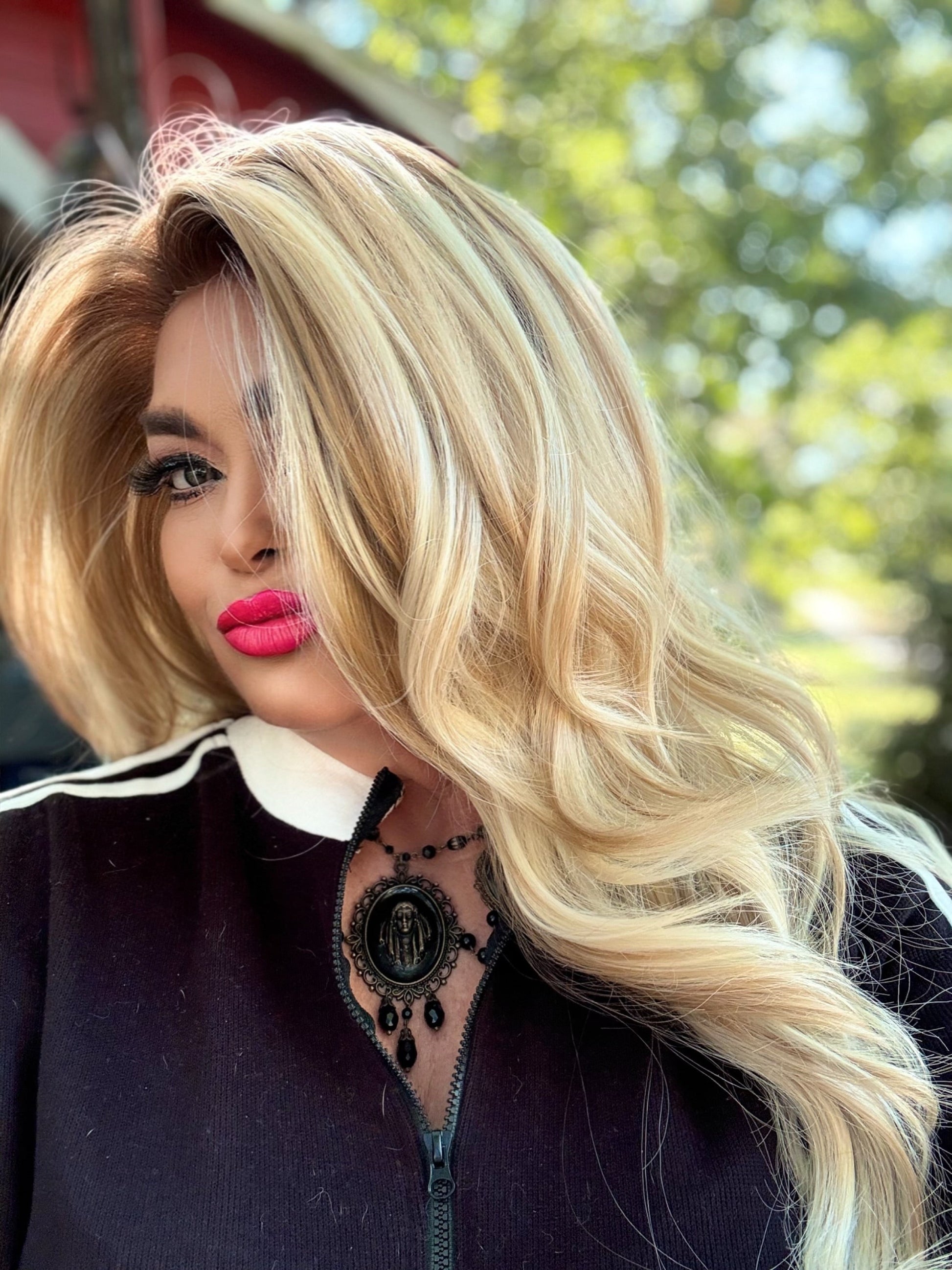 The BERLIN lace front wig features a 13x4 pre-cut luxe lace for seamless styling with free parting versatility. Crafted from premium heat-resistant Futura synthetic fiber, it offers durability and the ability to style with heat tools. Measuring 24 inches, the wig showcases loose curls with long layering for natural movement. Its low-density cap combines stunning cool and warm blonde tones with a subtle smudge root for a realistic look. Adjustable straps and a standard cap size ensure a secure, comfortable fit for expert wearers seeking both style and quality.