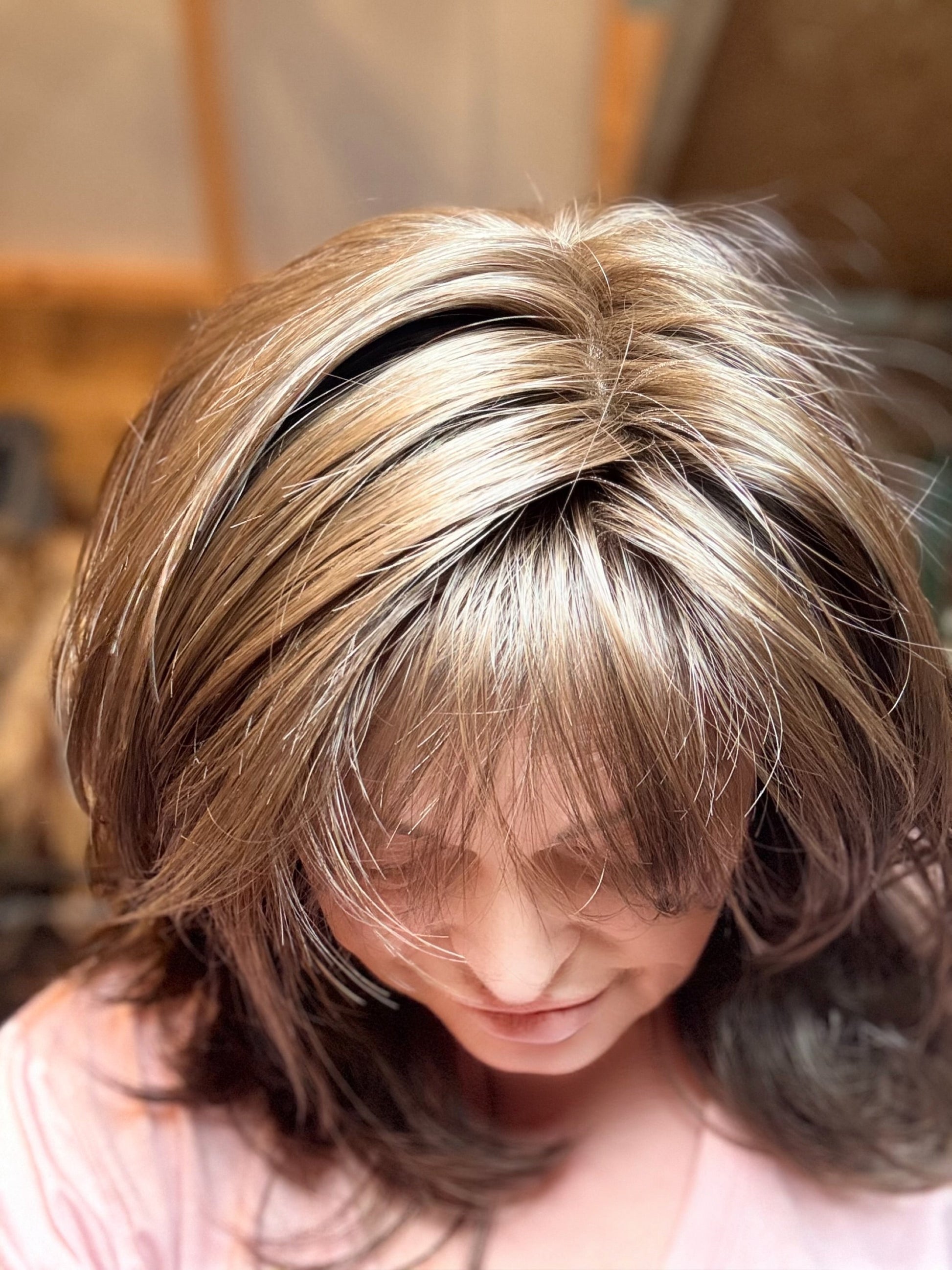 Experience luxury and style with BETH  Mono. This monofilament lace front hairpiece boasts a free part for customizable styling. Featuring a 12-13 inch straight cut with layers and bangs, the premium heat resistant future synthetic fiber blend creates a stunning blonde mix with cooler and neutral tones. Adjustable velcro straps ensure the perfect fit for any petite to standard cap size. In stock and ready to ship within 14 days.