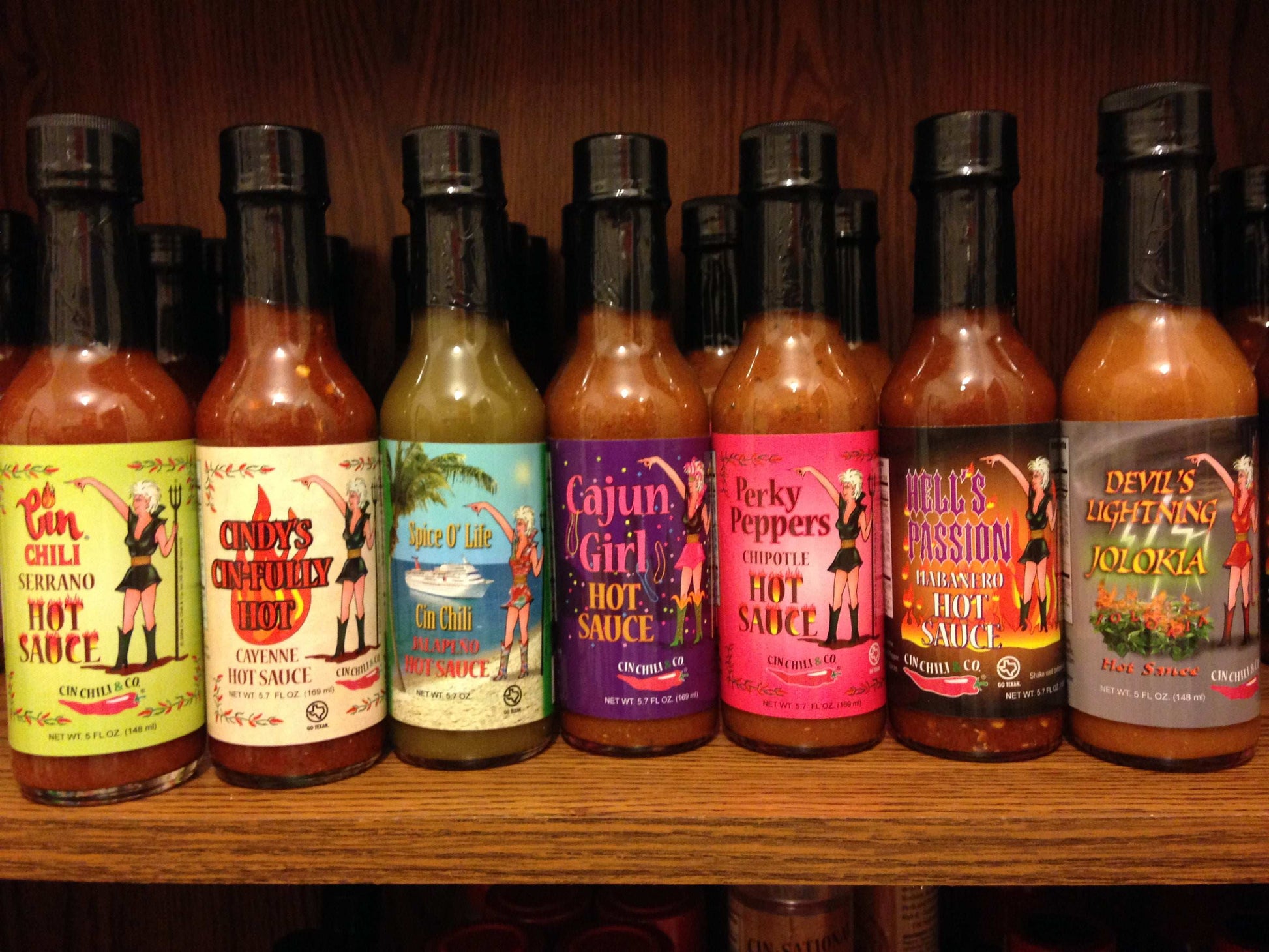 CINDY'S HOT PACK...7 HOT SAUCES: Cin Chili Serrano, Cindy's Cin-fully Hot Cayenne, Hell's Passion Habanero, Perky Peppers chipotle, Spice O' Life Jalapeno, Cajun Girl Louisiana Style, Devil's Lightning Bhut Jolokia Ghost Pepper.