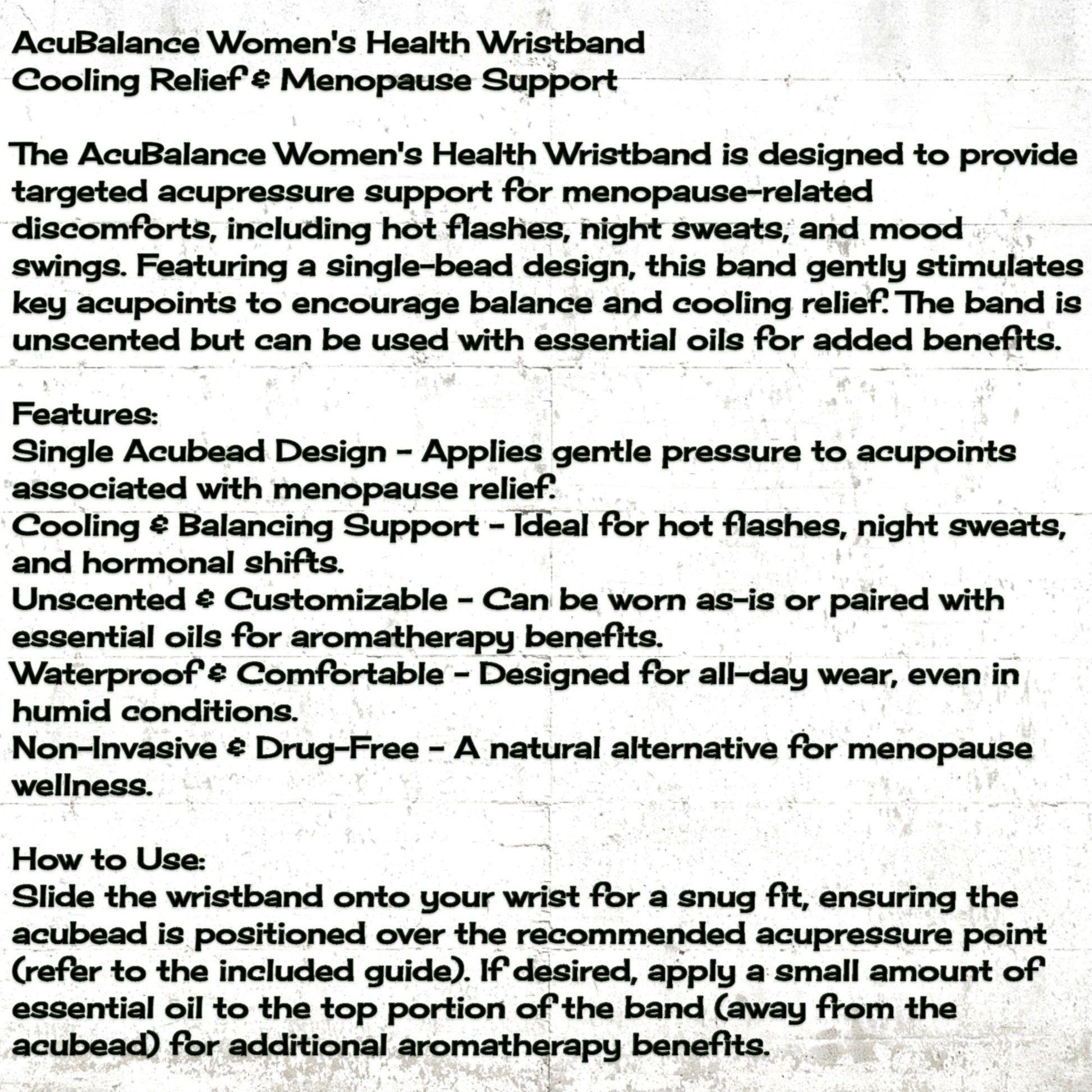 Find natural support during menopause with the AcuBalance Women's Health Acupressure Bracelet. This versatile and durable bracelet combines gentle acupressure and the snap technique to help promote relaxation, balance, and daily comfort. Whether you’re seeking relief from hot flashes or need support during night sweats, this bracelet offers a simple, soothing way to enhance your well-being.
