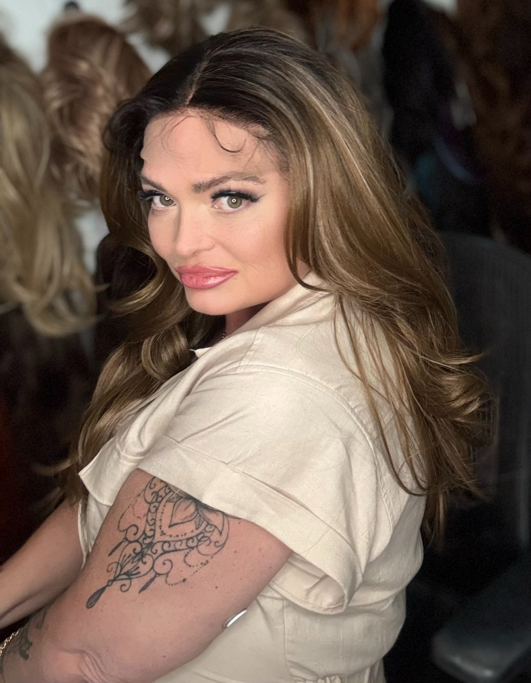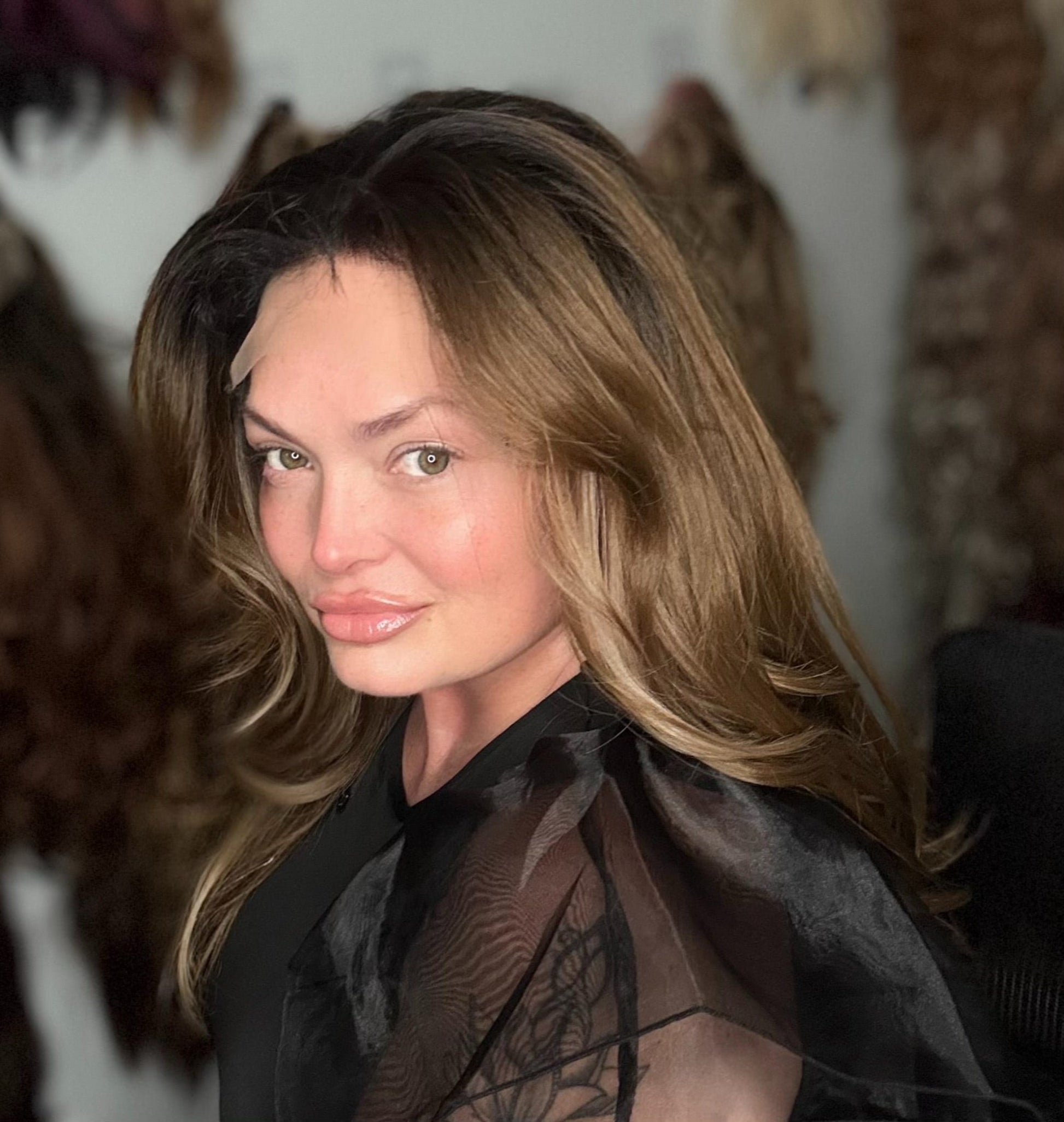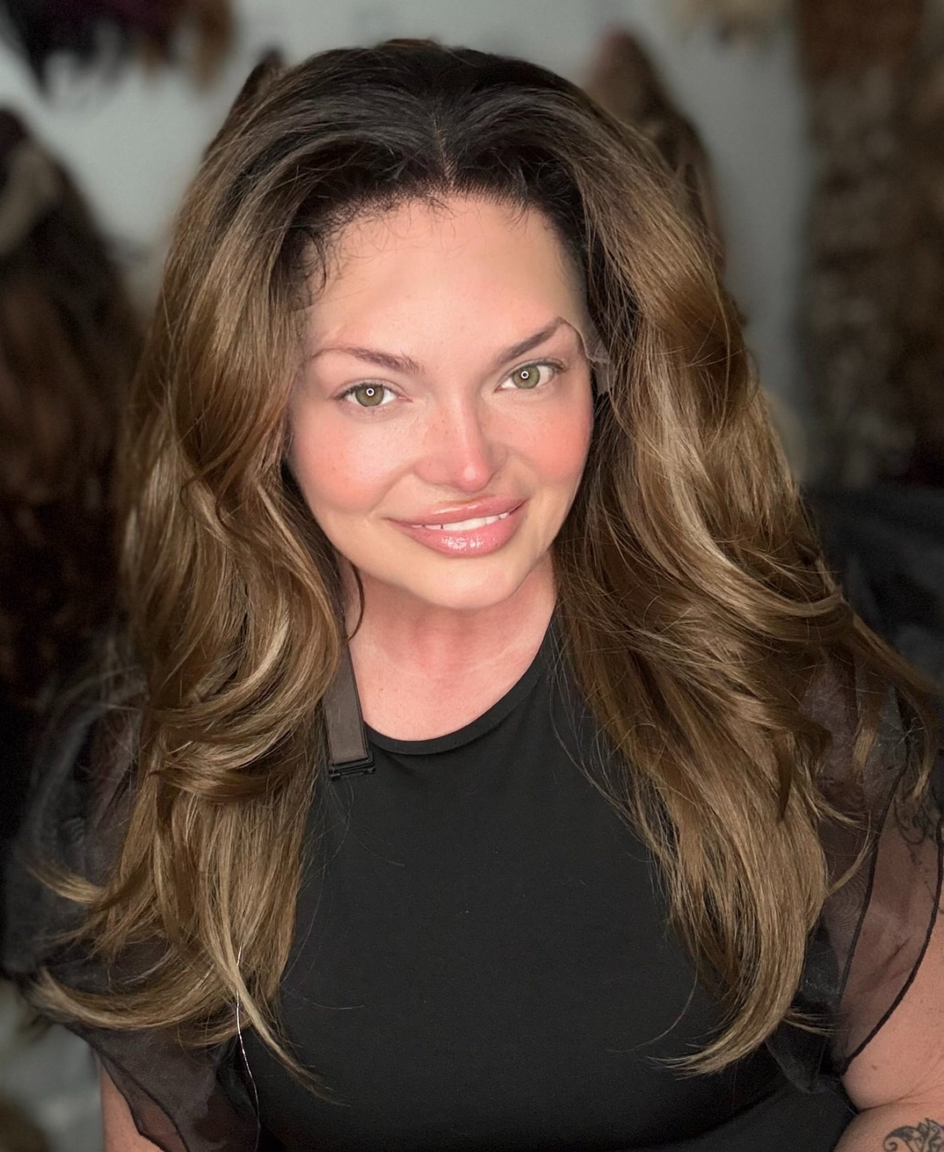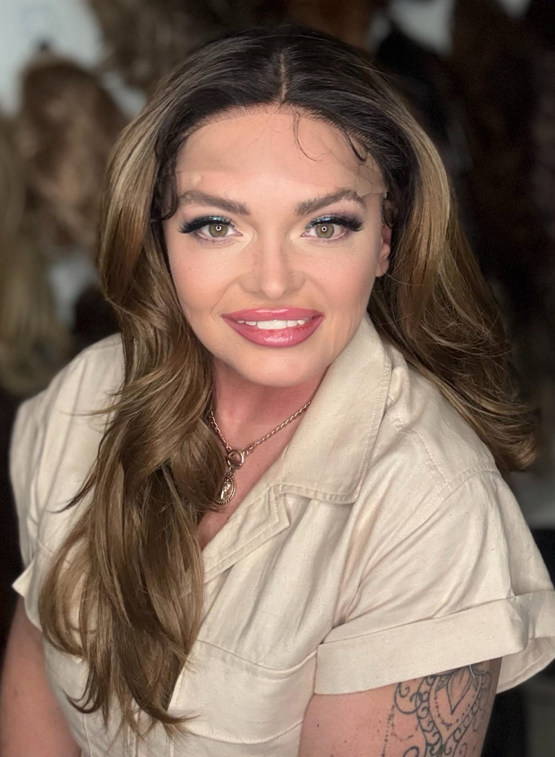 As a premium heat resistant, synthetic fiber, CRASHELLE's 13 x 6 lace front provides adjustable comfort with stunning brown balayage and long curtain bangs. This 22 inch wig comes in standard cap size, includes a free part, and is in stock and ready to ship within 10 to 14 days.