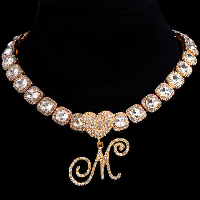 This Cursive Letter Pendant Micro Tennis Cluster Chain is perfect for adding a touch of elegance to a special occasion. Crafted from gold-plated steel and designed for girls and women, this beautiful necklace features a delicate chain for a classic, romantic look. It's the perfect accessory for weddings, parties, daily wear, or to give as a special gift.