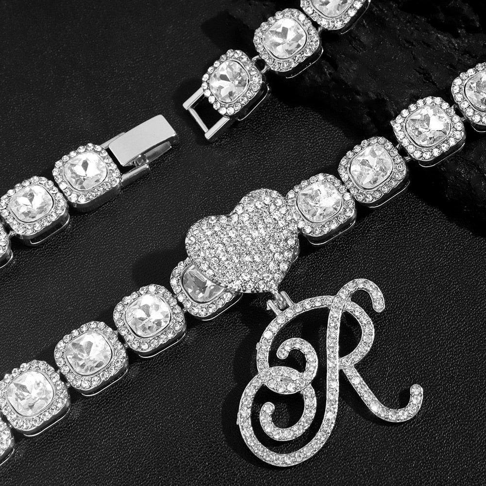 Cursive Letter Pendant Micro Tennis Cluster Chain - Silver