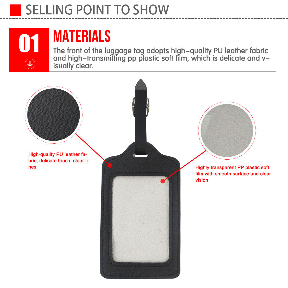 The luggage tag is mainly made of high-quality PU leather, which is durable and bendable, not easy to break, reusable, or fade, and easy to clean. A convenient luggage tag will be a nice choice for you to use with your family when traveling or on business which can help you label your information.