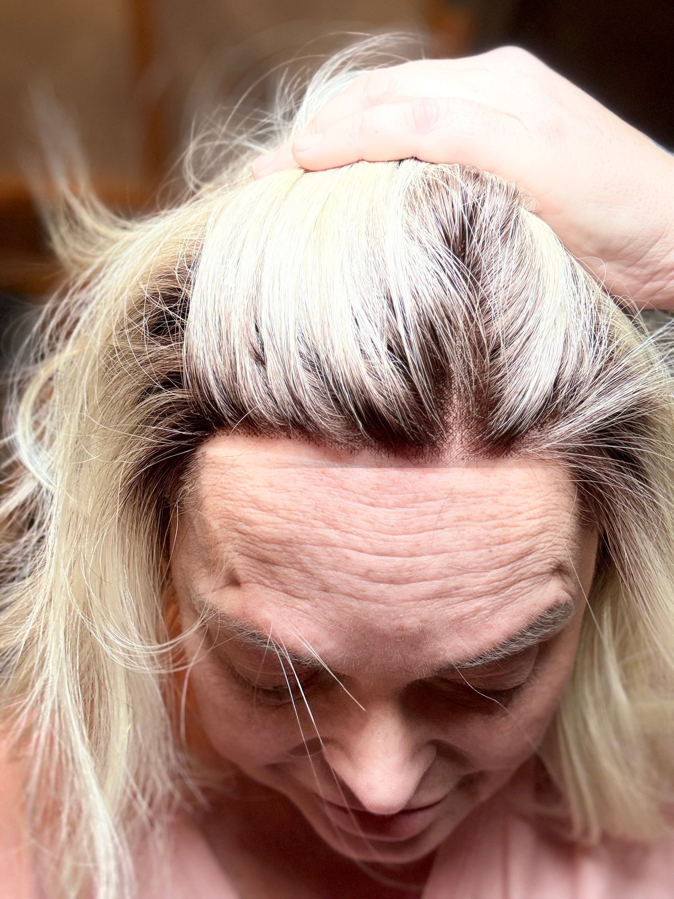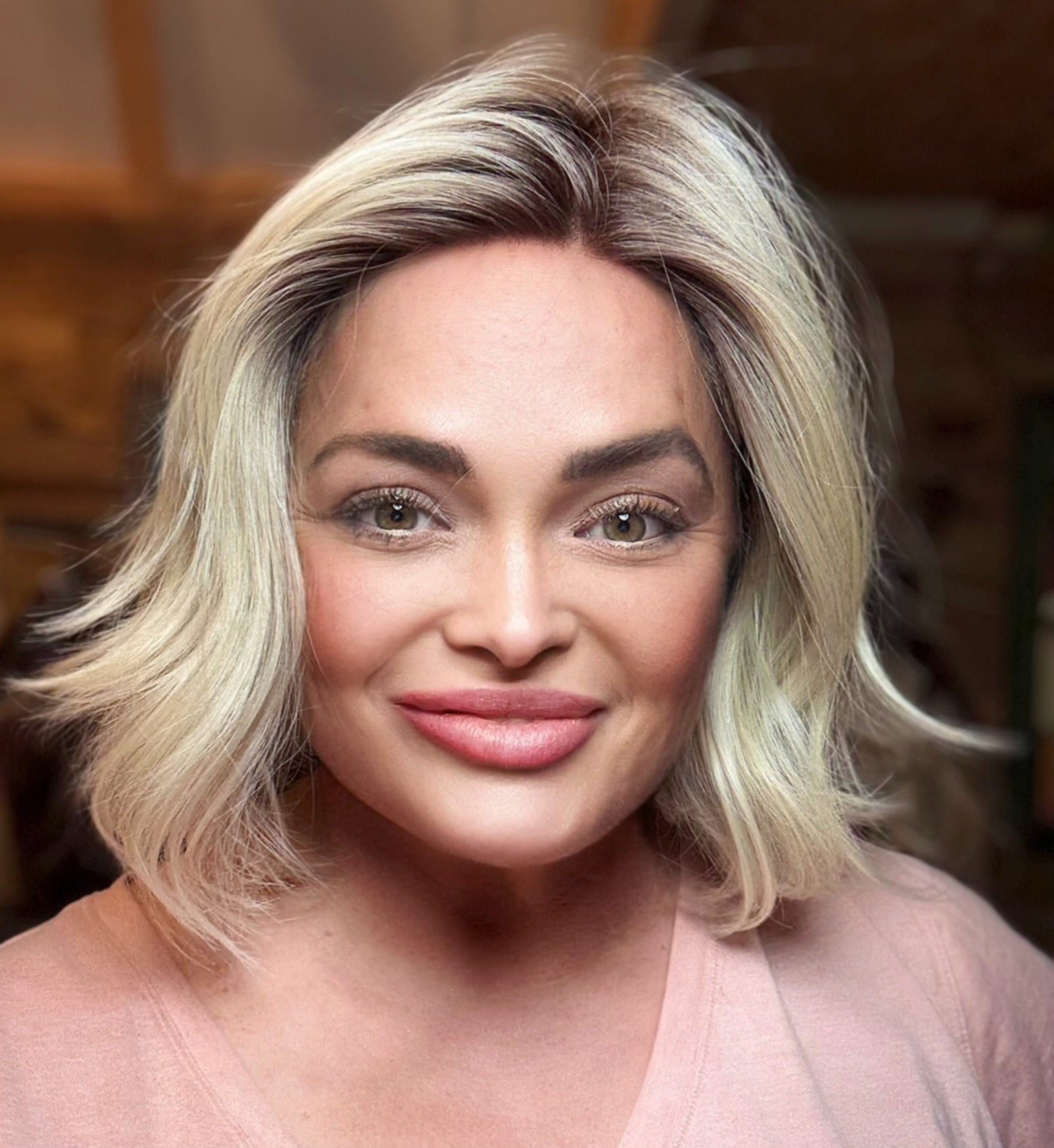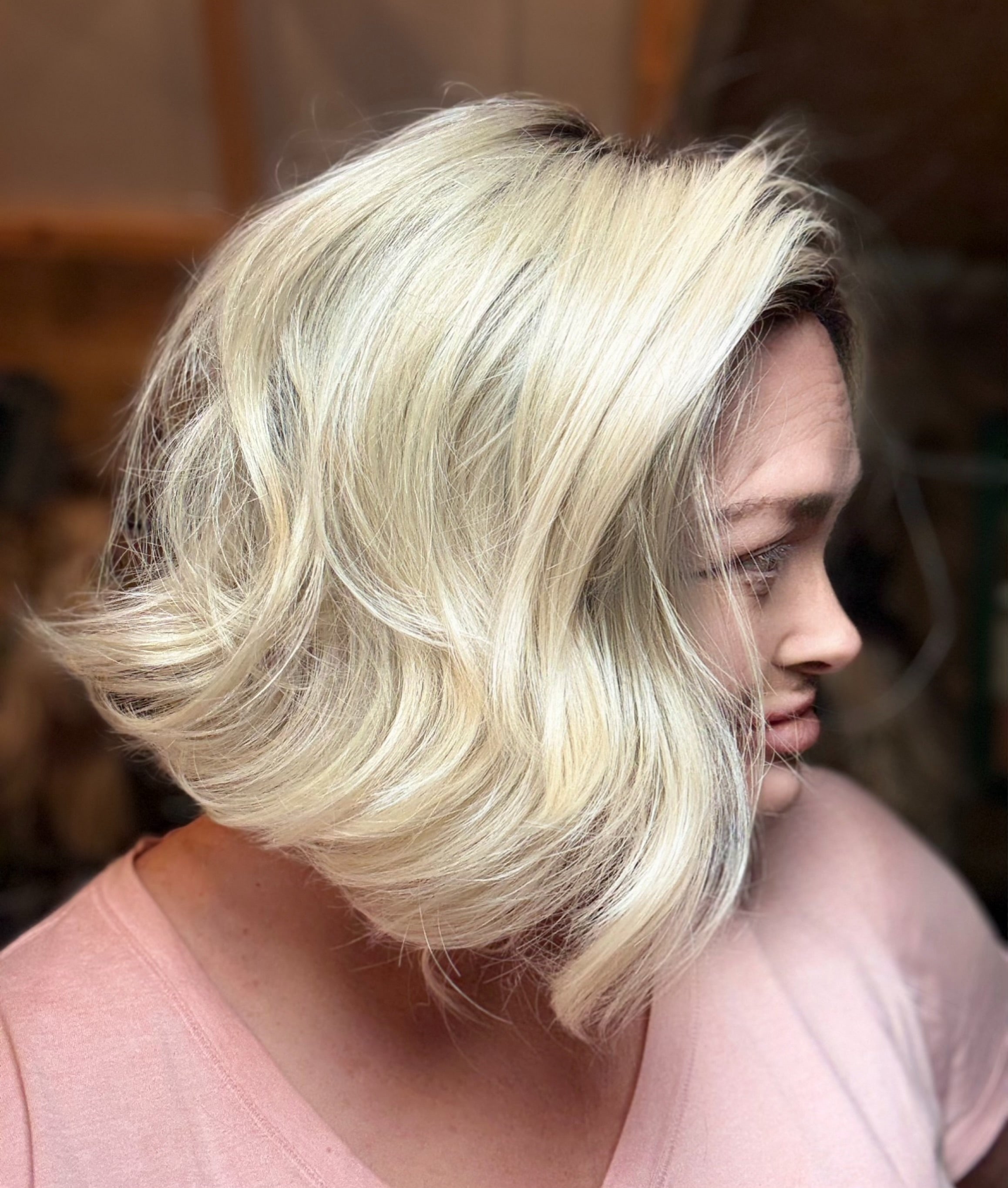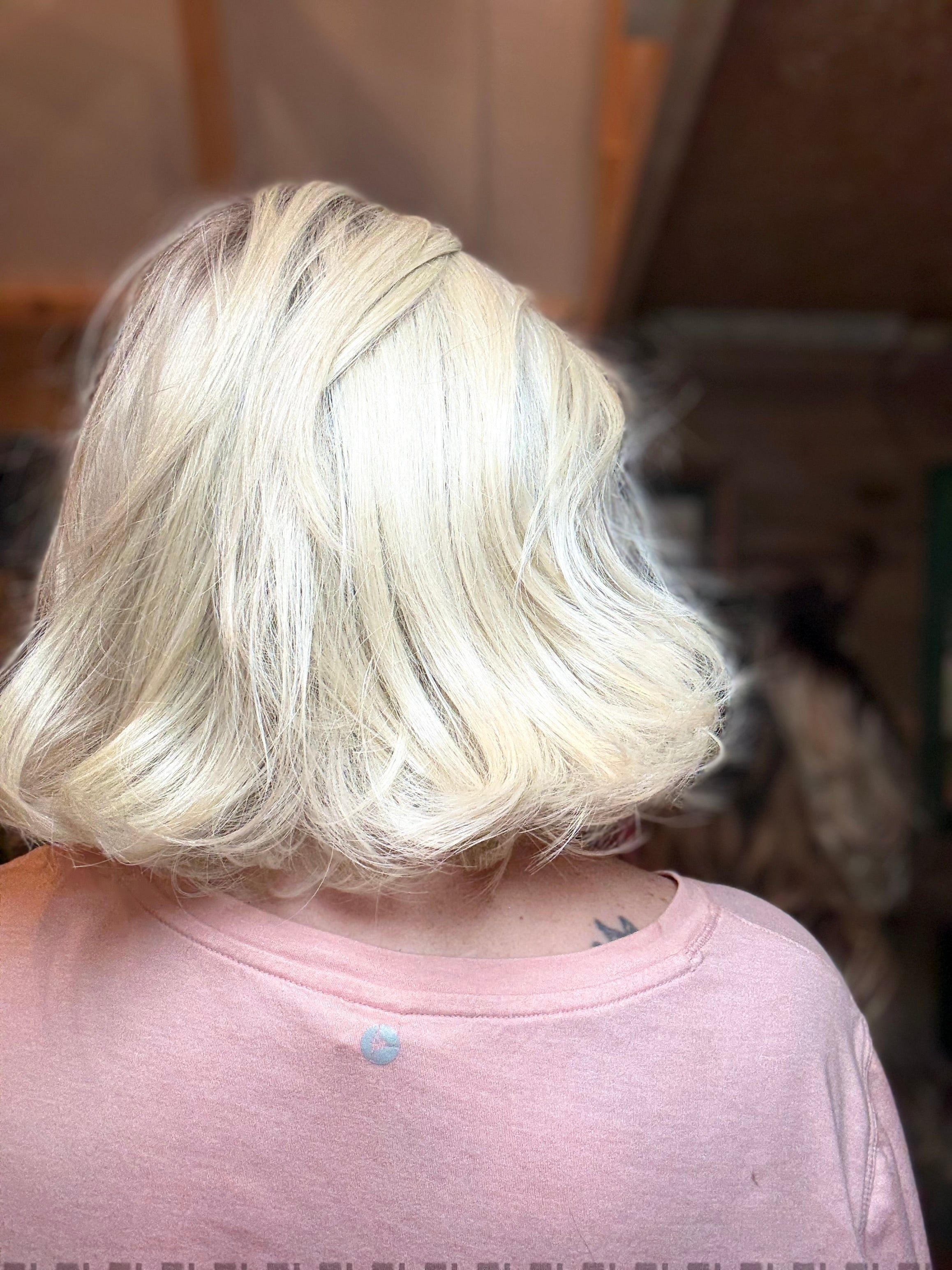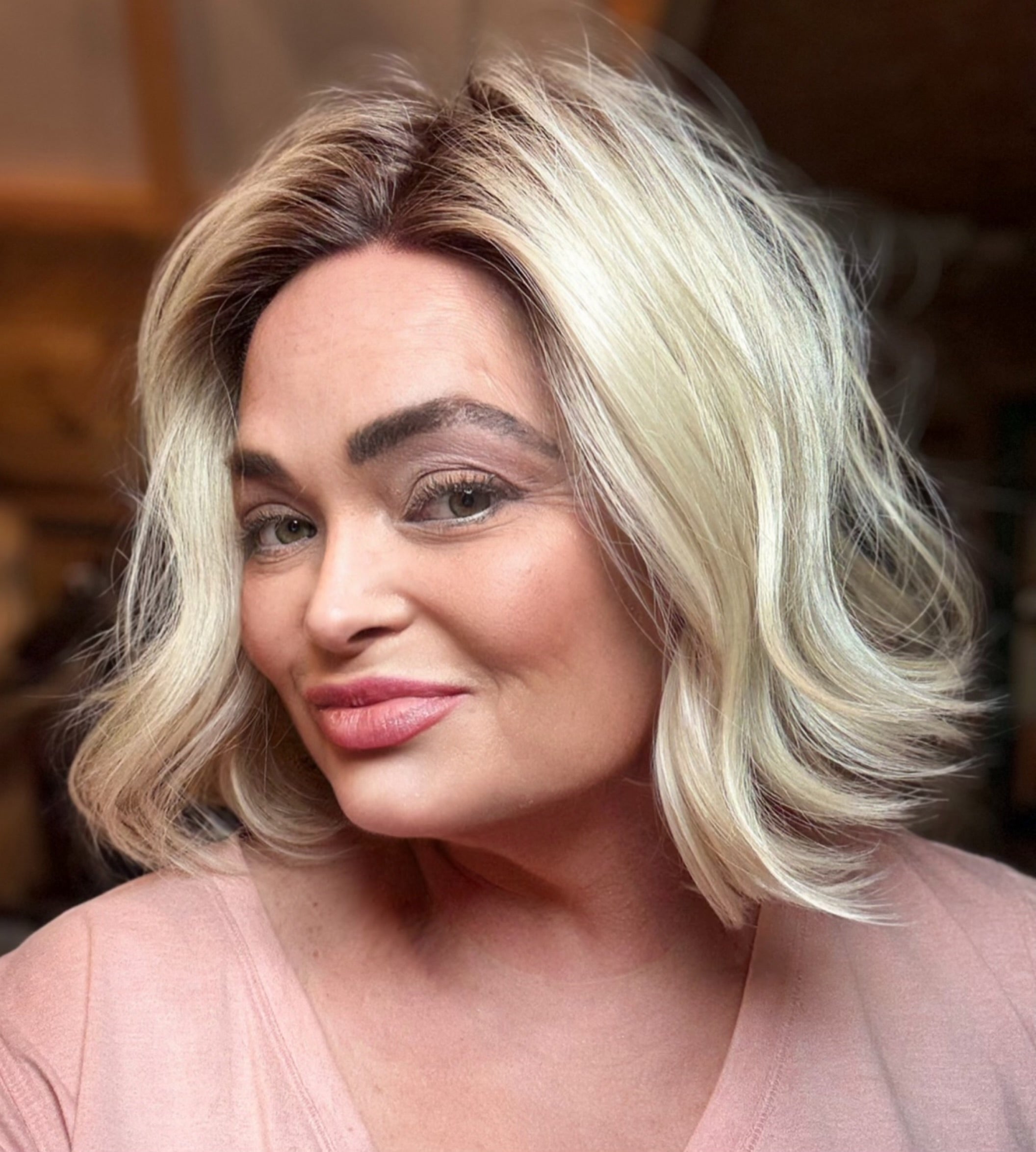 Introducing DAISY, a luxury wig with stunning natural blonde color and rooting, featuring a full monofilament lace front for a realistic hairline. With a free part, adjustable velcro straps, and open wefted design, this wig is perfect for a comfortable and customizable fit. Made with premium heat resistant Futura synthetic fibers, this 10" loose body wave wig with wispy ends is perfect for any occasion. Available in petite to standard cap sizes.