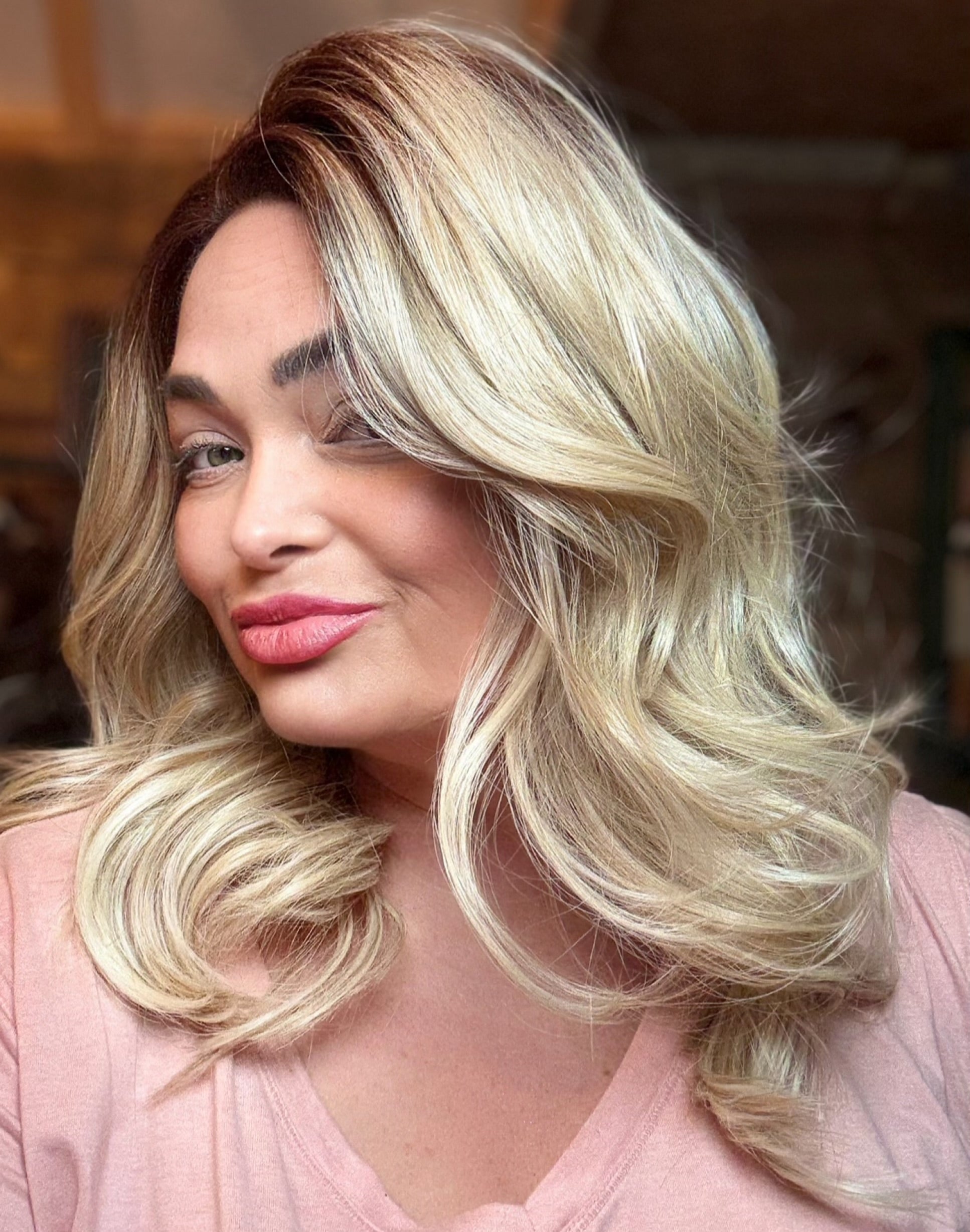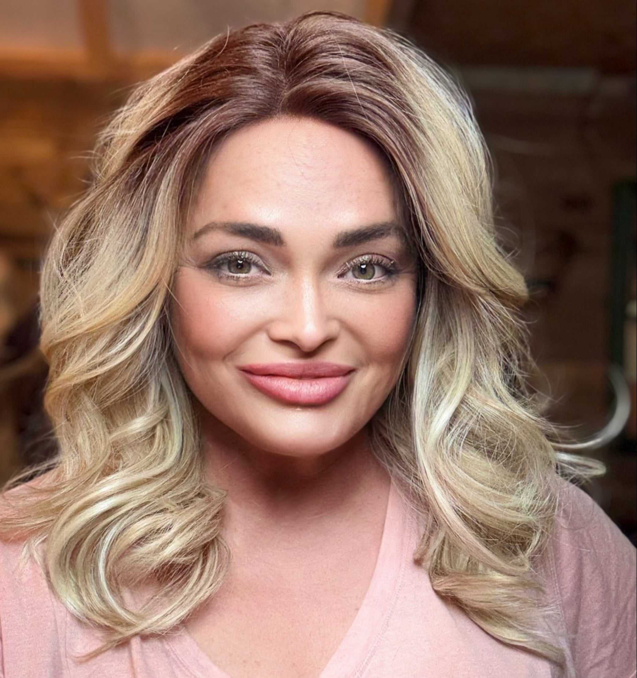 DAWN offers a luxurious full monofilament lace front with a free part and premium heat resistant Futura synthetic fiber blend. The 14" loose curl in neutral blonde with rooting adds a natural look. The velcro adjustable straps and open wefted design guarantee comfort and a secure fit for petite to standard cap sizes.