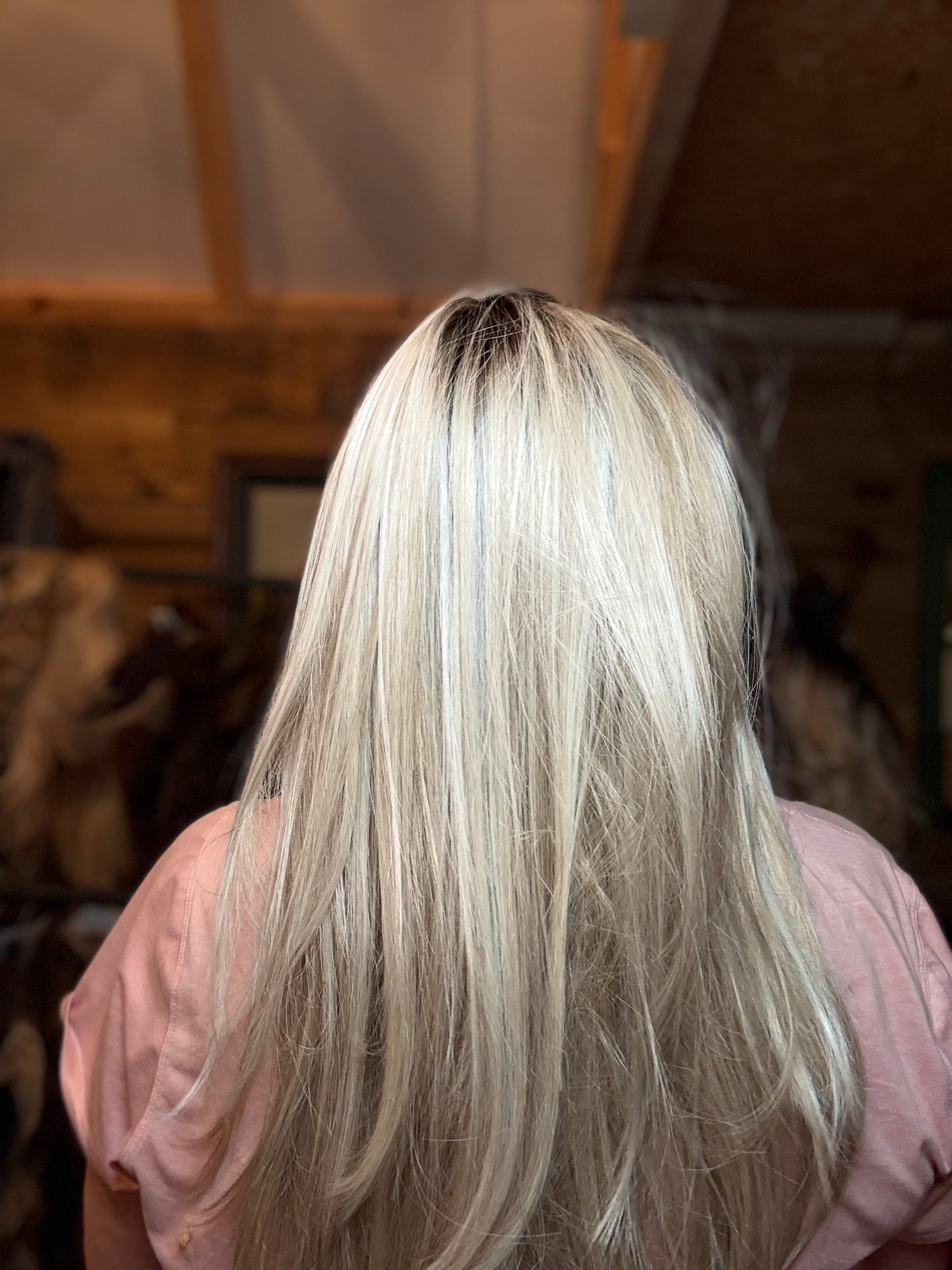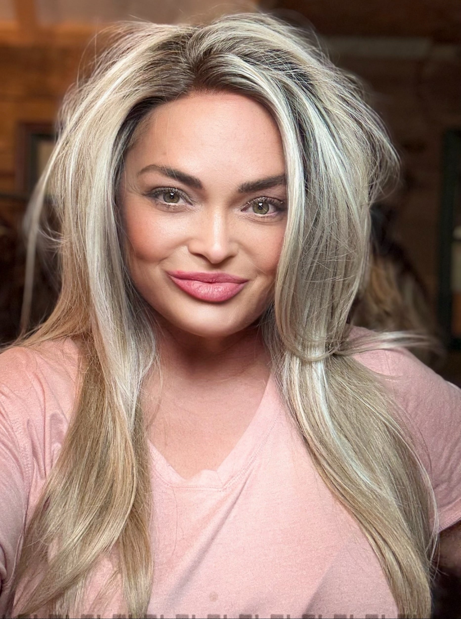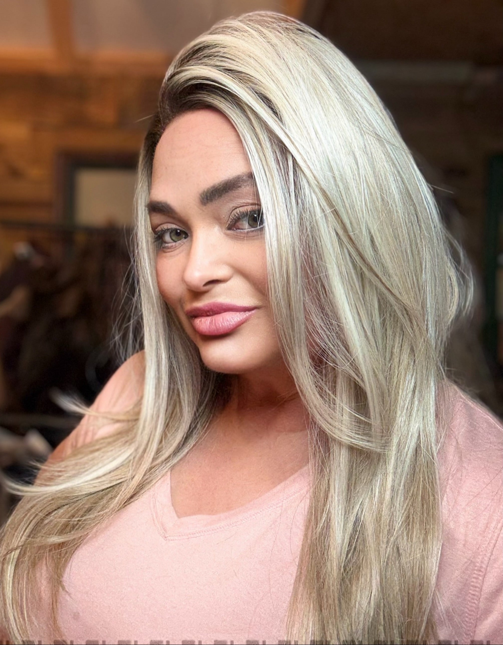 DESIREE Mono: Luxury meets versatility with our full monofilament lace front wig. The high-quality, heat resistant Futura synthetic fiber blend allows for styling options, while the adjustable Velcro straps ensure a perfect fit. The stunning platinum color with warm blonde undertones and dark rooting adds a touch of sophistication to any look. Available in petite to standard cap sizes. In stock and ready to ship within 14 days.
