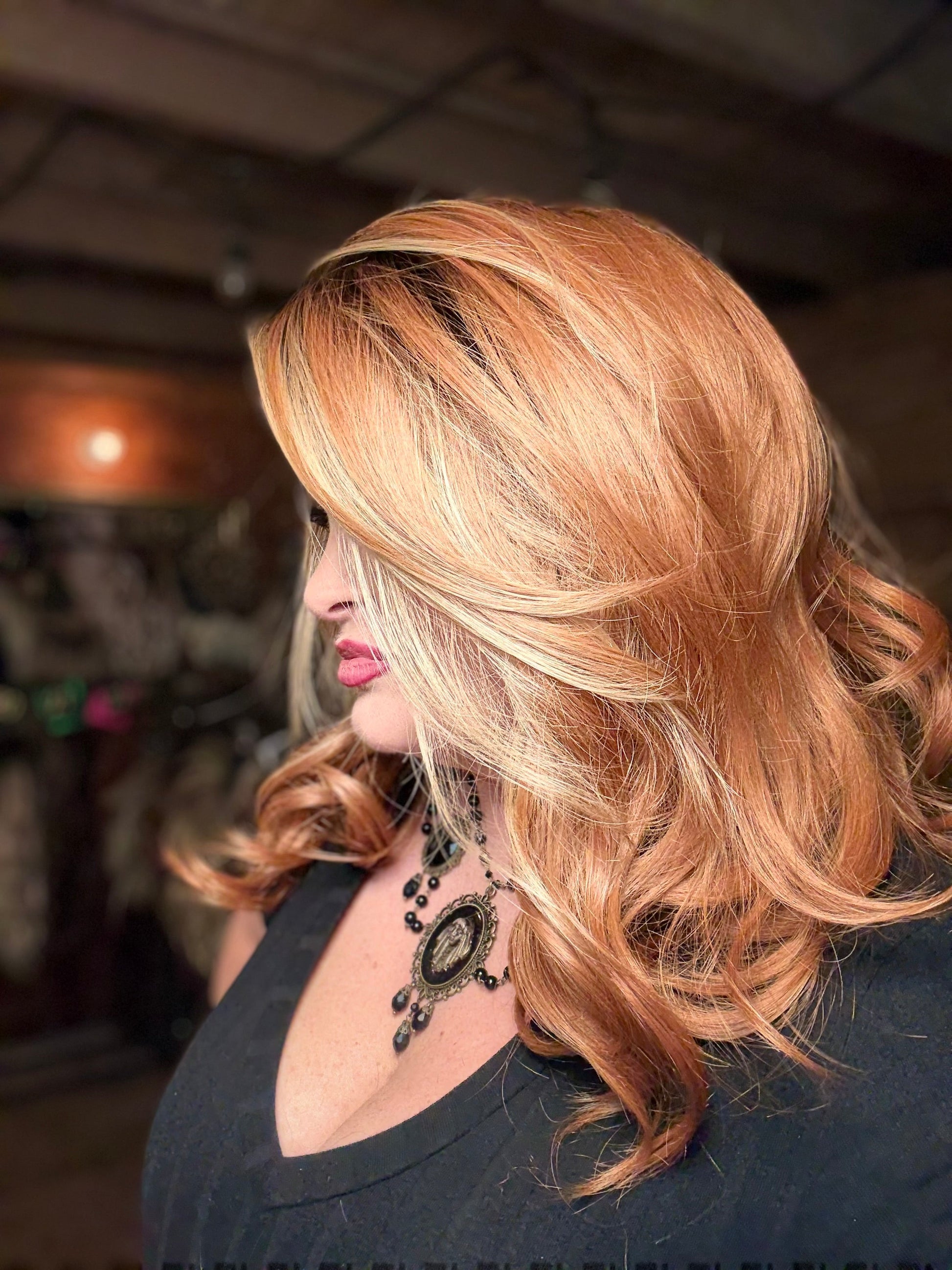 The DESTINY RESTOCK PRE ORDER features a 13 x 3 lace front and a free part, providing a natural and customizable look. Its premium heat resistant synthetic fiber allows for versatile styling and its stunning copper blonde color with darker rooting adds dimension. With adjustable straps and a standard cap size, this custom designed wig by WBR offers a comfortable and stylish fit.
