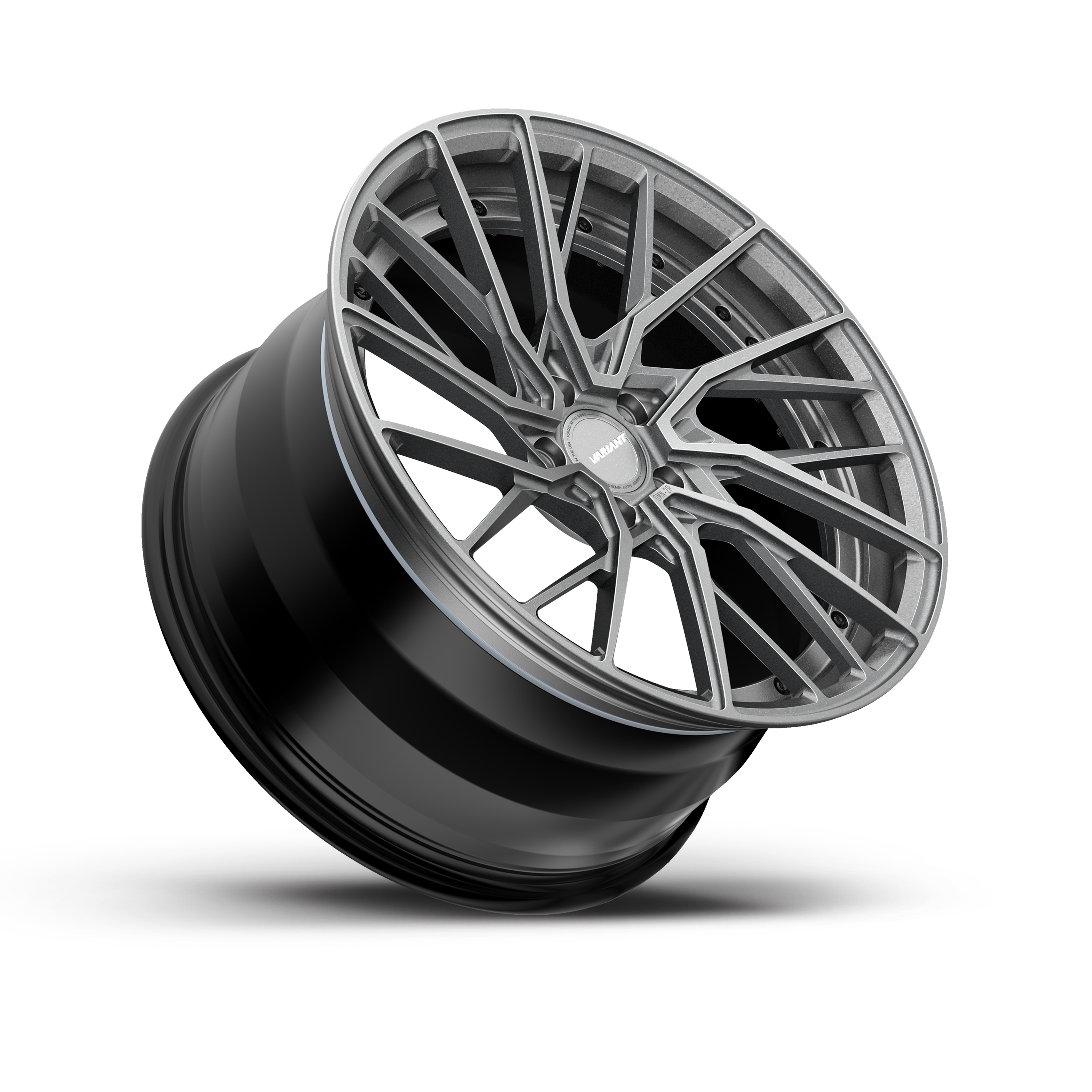 The DMN-2P is an elaborate directional wheel utilizing the combination of a classic split 5 spoke overlaid by a complex set of secondary spokes giving a unique visual that compliments most of today’s modern sports cars, supercars, and aggressively styled luxury vehicles. This semi-custom 2-piece forged wheel is crafted using 6061-T6 aerospace aluminum with the utilization of our in-house CNC machining center, the DMN-2P is available for most five-lug bolt patterns and offered in a wide range of fitments.
