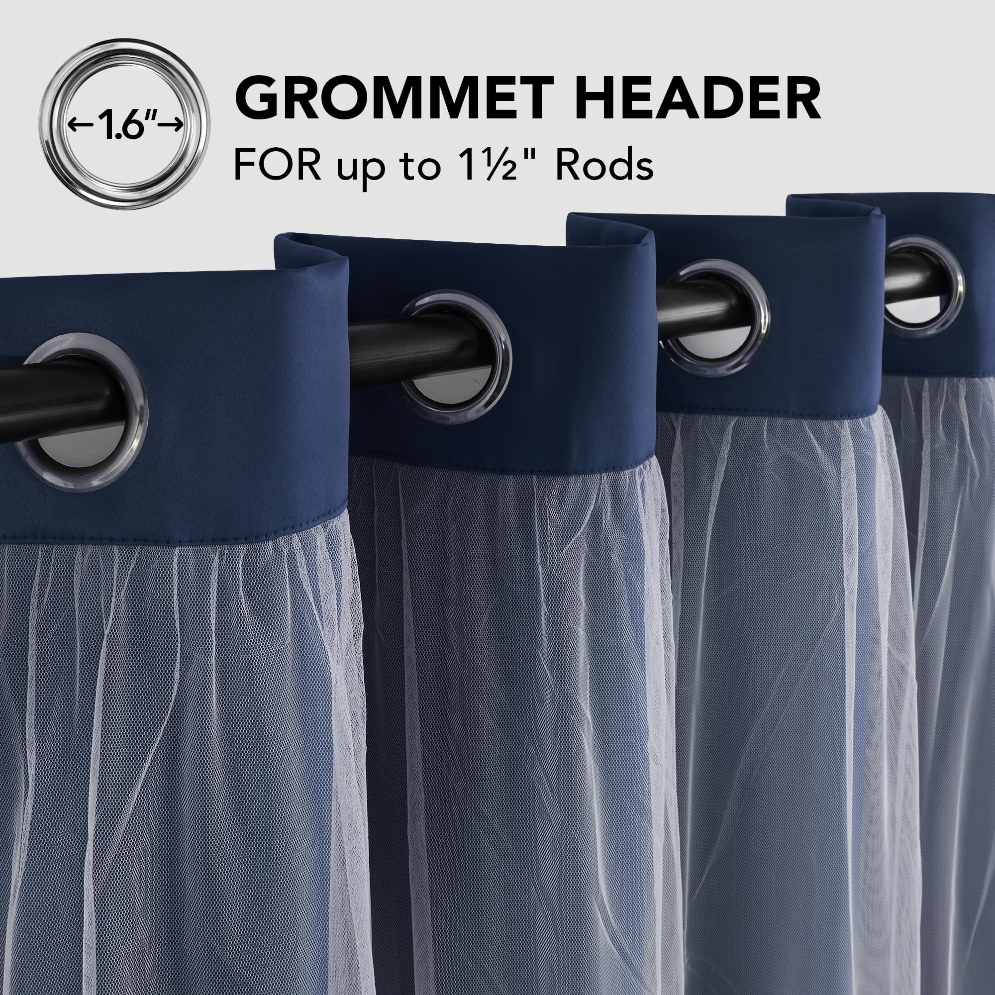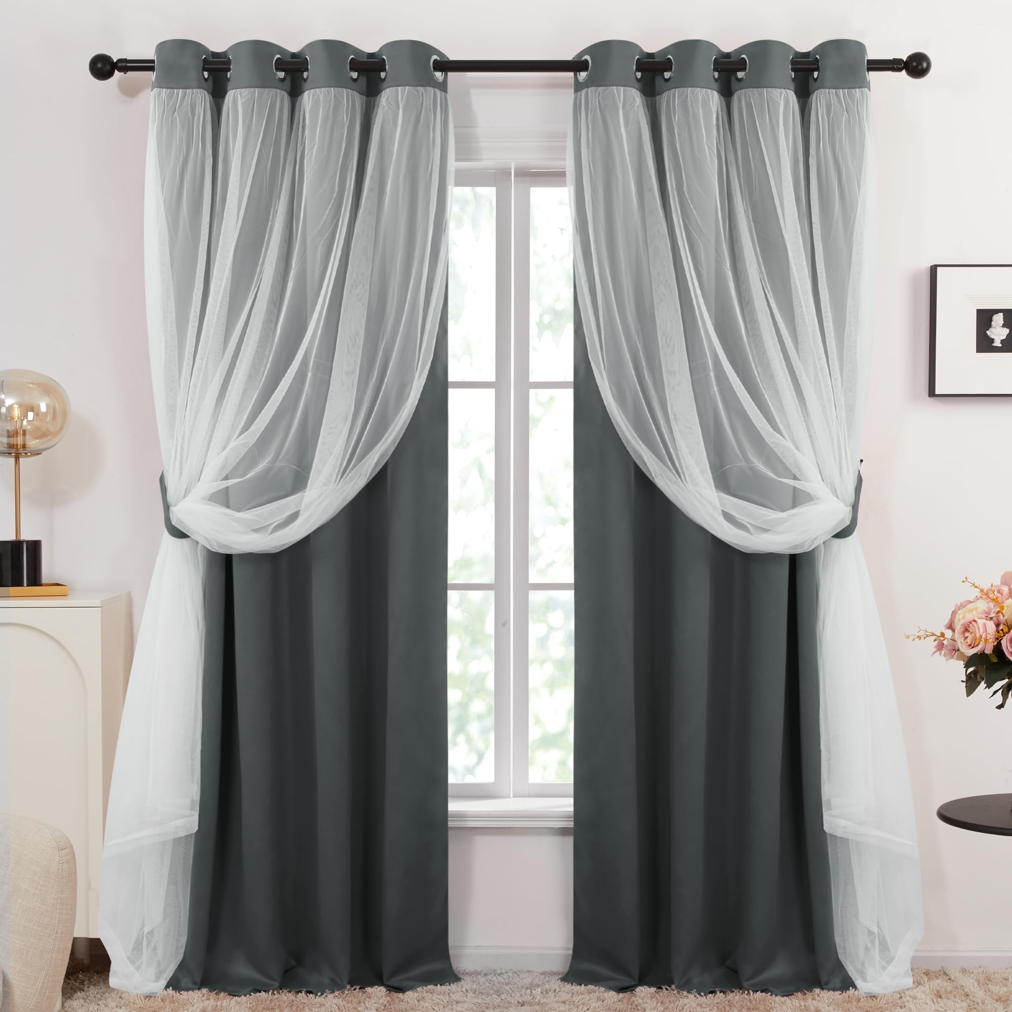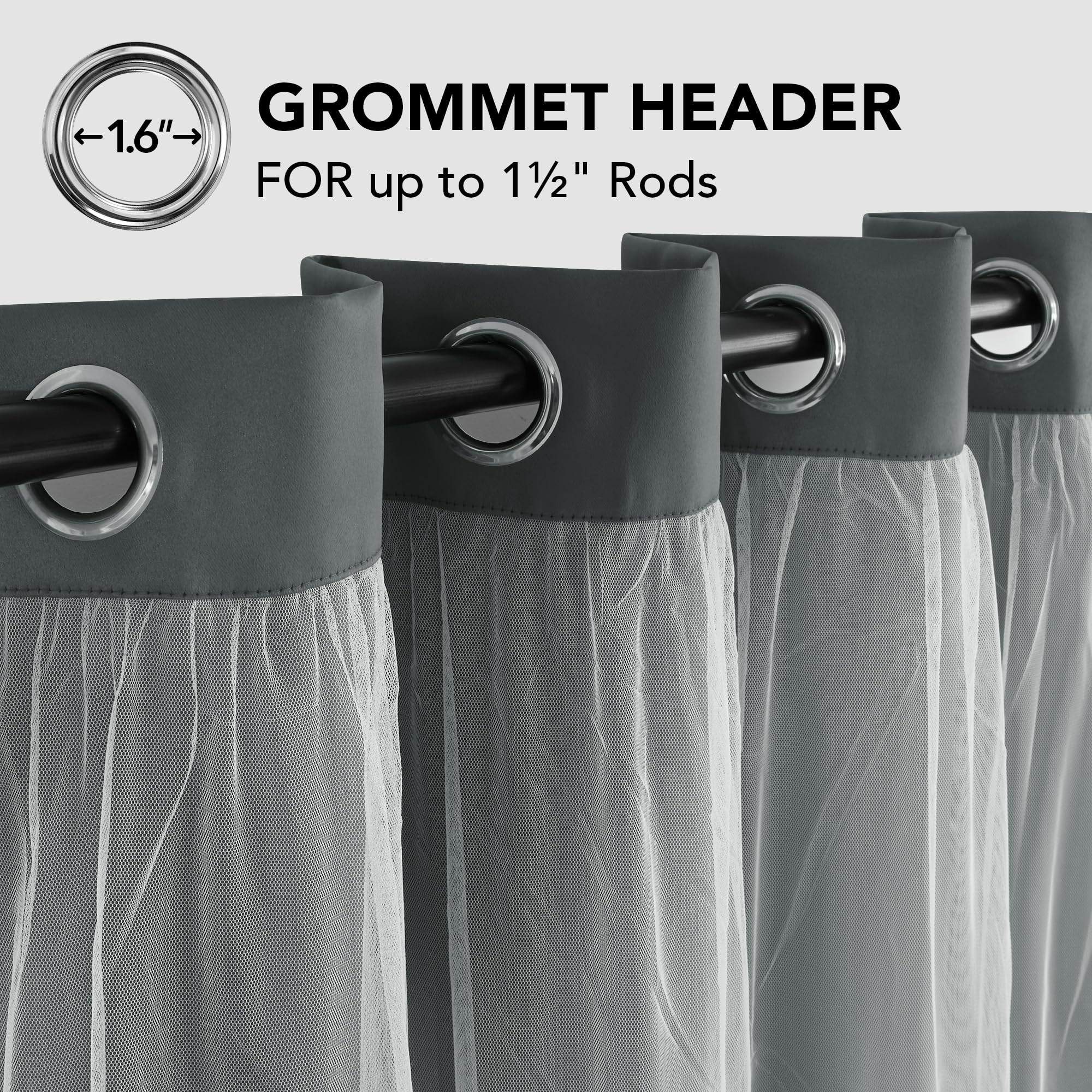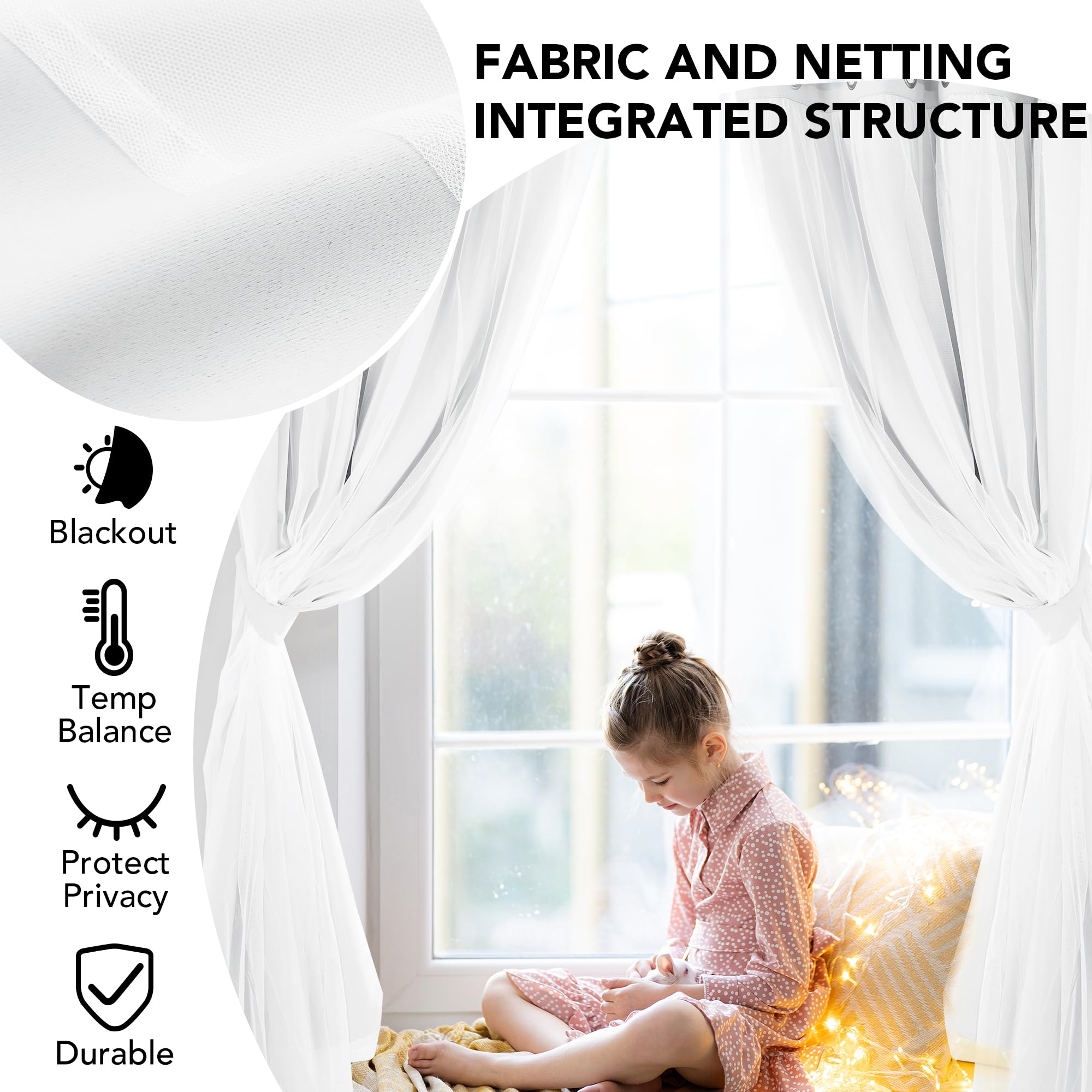 These sheer overlay blackout curtains maintain comfortable indoor temperature by blocking heat and cold air. Ideal for bedrooms, living rooms, hotels, offices, and children's rooms.