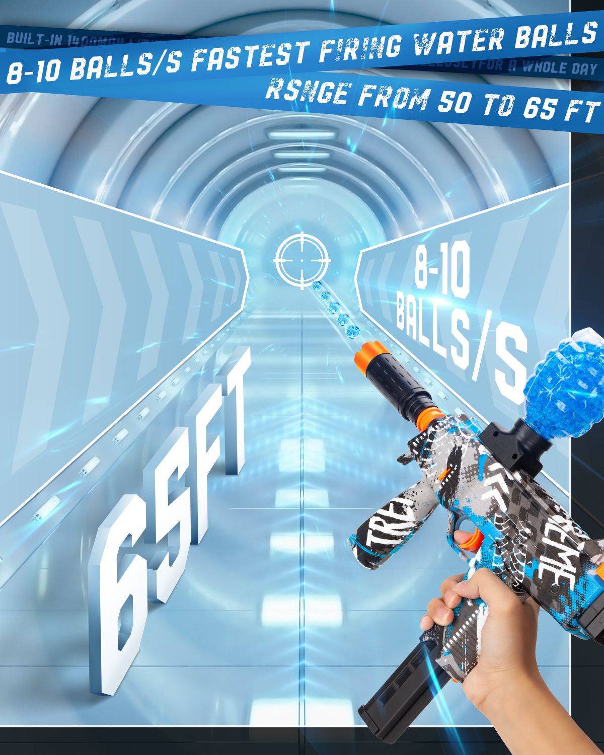 [Long-Range Gel Ball Blaster]: This blaster is fast as sonic and it’s fairly accurate because of the speed. its fast rate of fire and long-range shooting can give you a very real and interesting experience. It is just so fun using this to shoot targets![