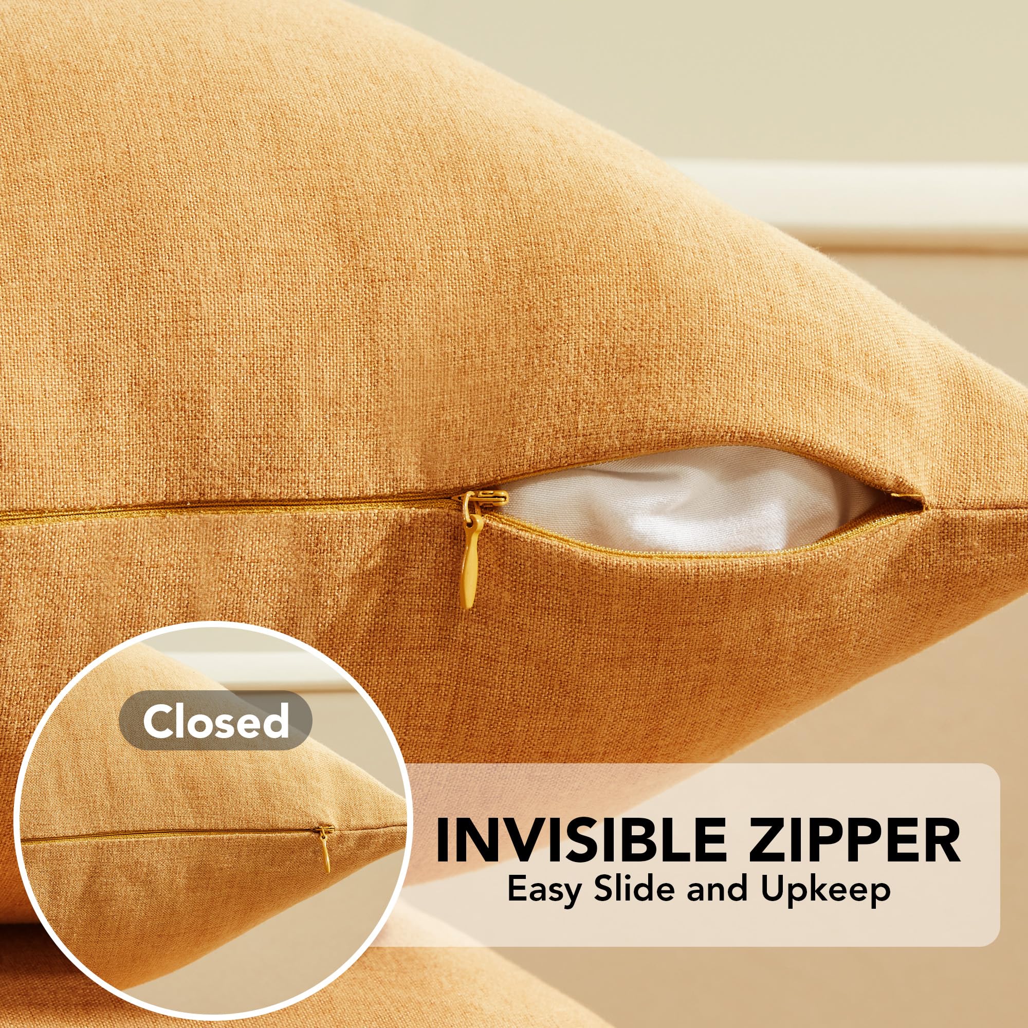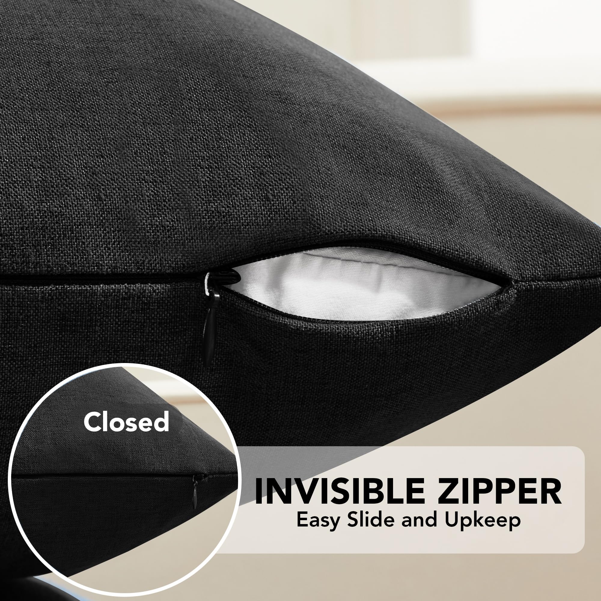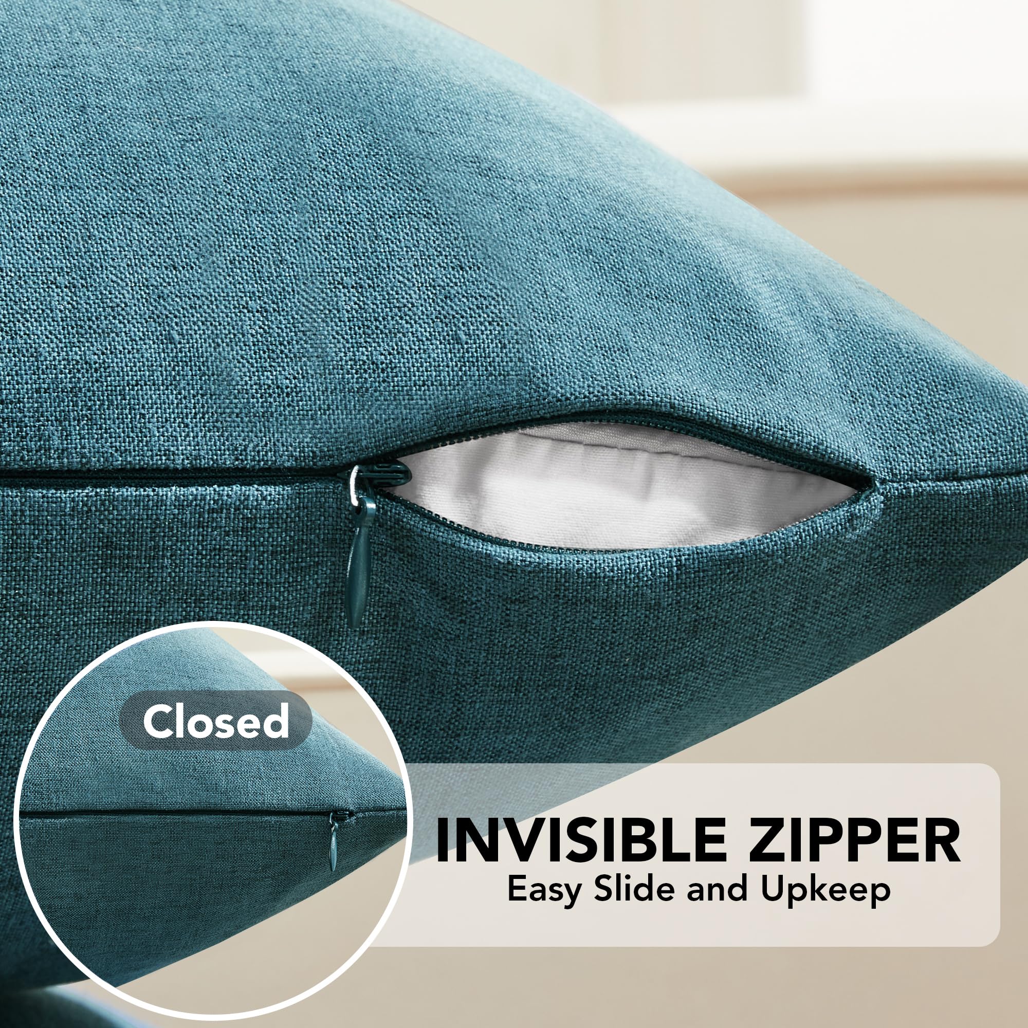 Delicate invisible zipper allows easy insertion and removal of pillow inserts, providing a clean, attractive appearance.