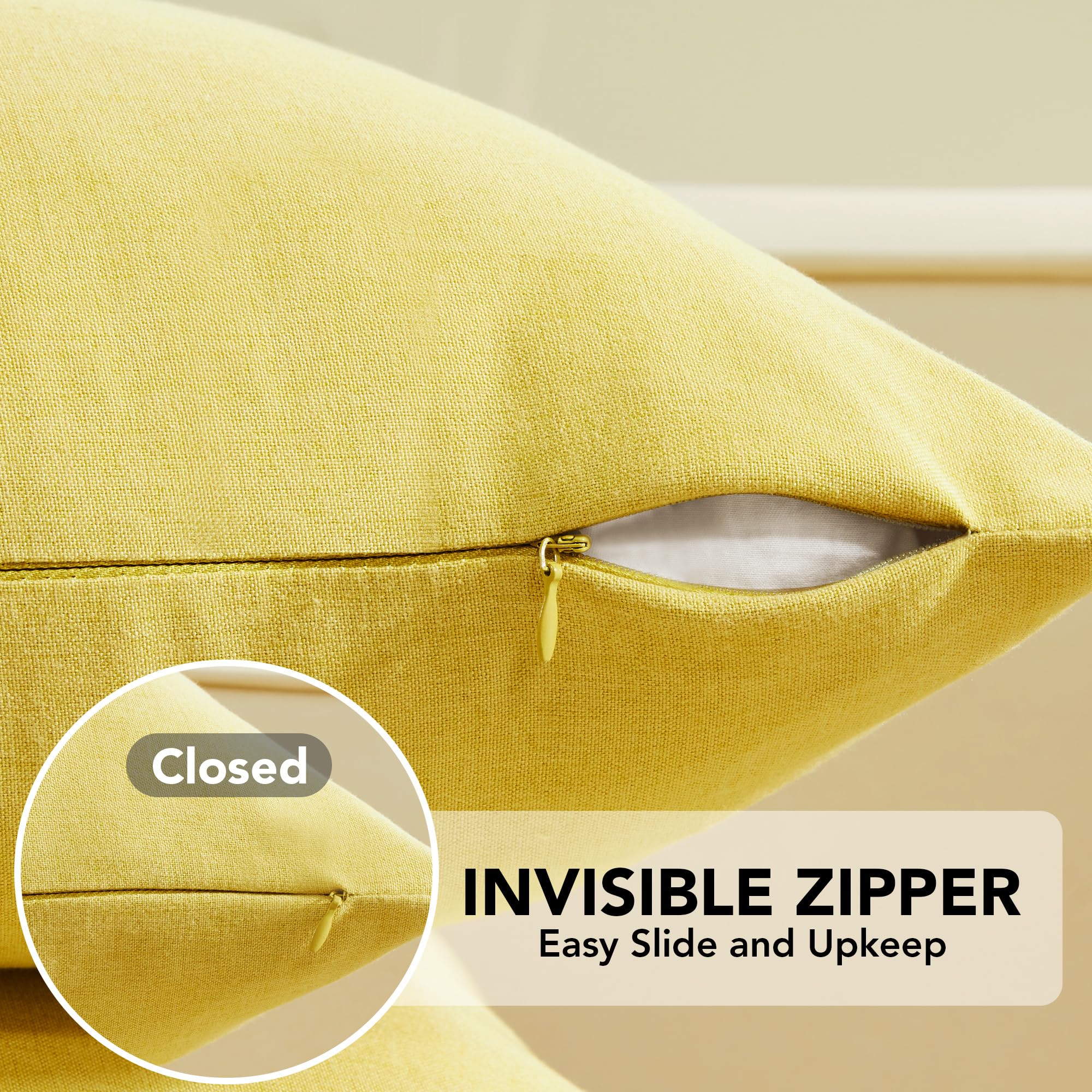 • Faux Linen Pillow Covers, 16x16 Inch, Creamy White, 2PCS