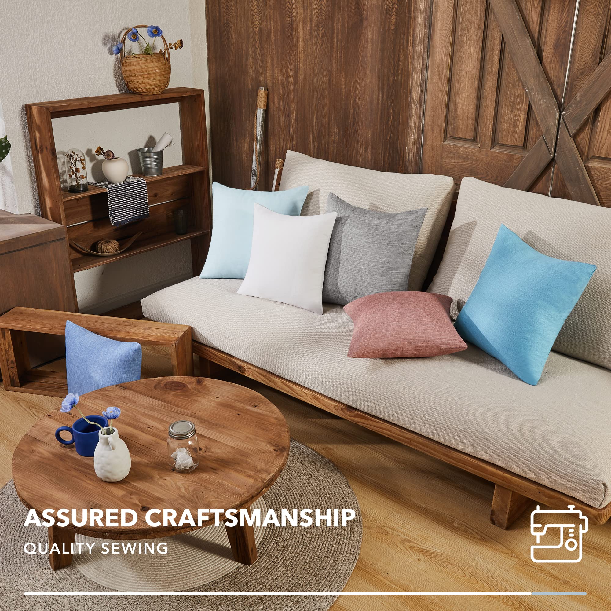 • Faux Linen Pillow Covers, 18x18 Inch, Set of 4