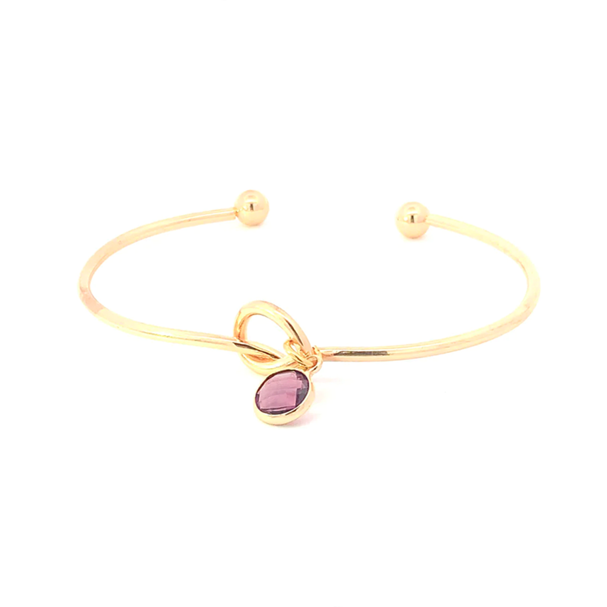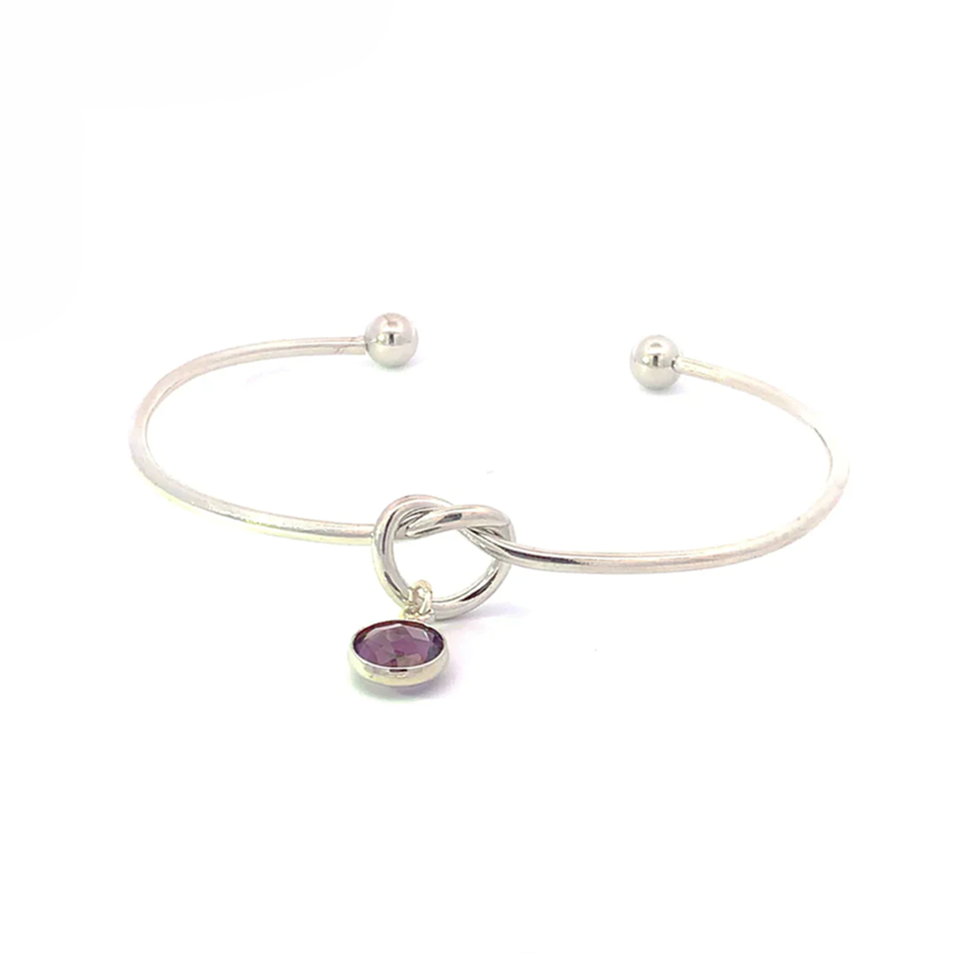 Our February birthstone knot bracelet features a dazzling amethyst bezel cut crystal, the birthstone of February. The knot design signifies love and unity, creating a meaningful and stylish accessory.