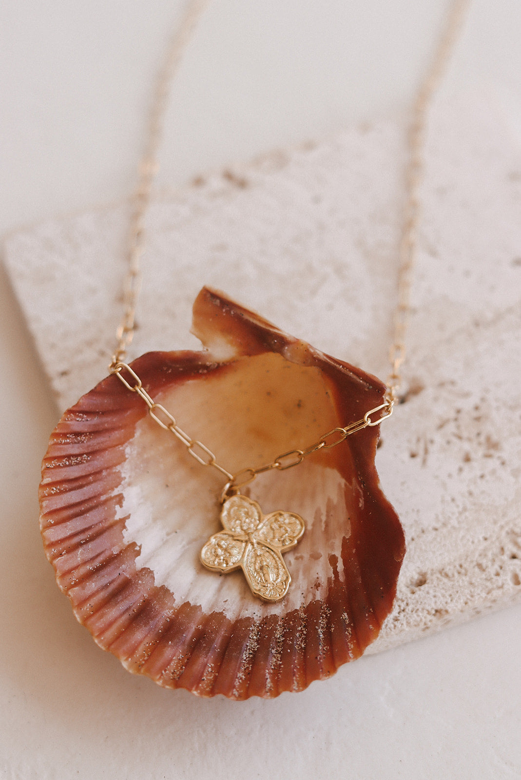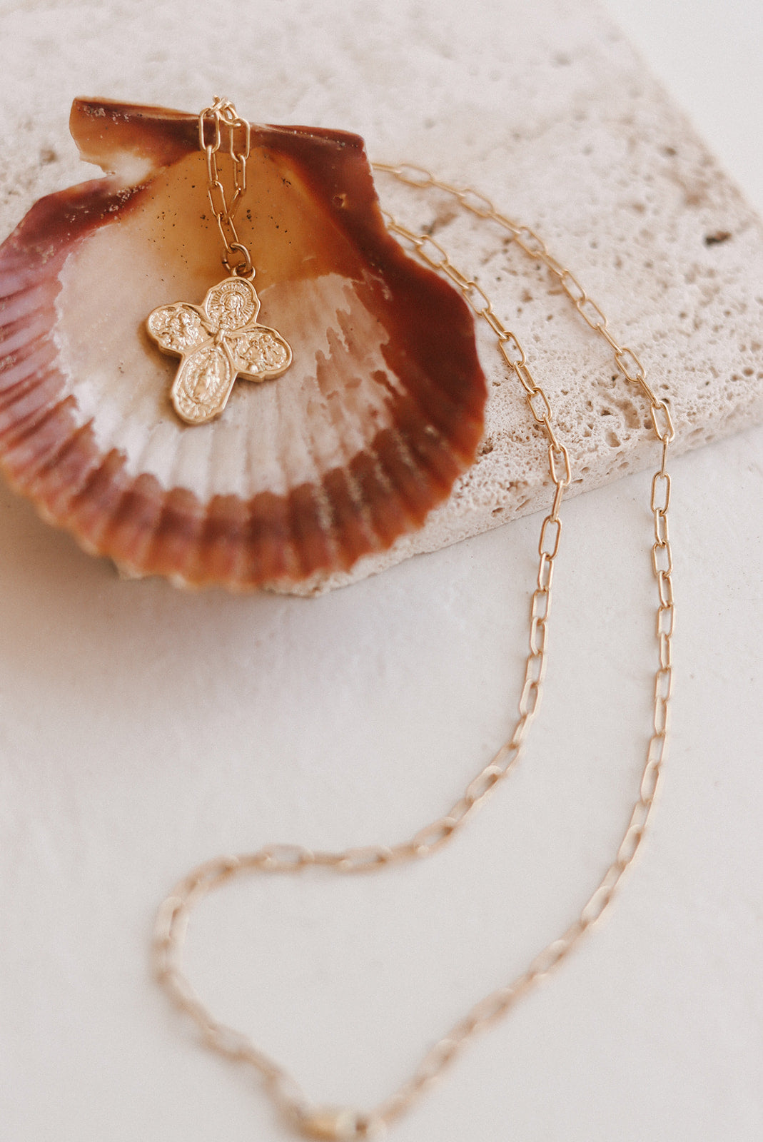 Embrace a fresh take on faith with this Four-Way Cross Necklace, where timeless devotion meets contemporary elegance. The 18K gold-filled paperclip chain adds a modern flair to tradition, making it a standout tribute to the saints who guide your journey. Inscribed on the back with "I am Catholic, Please Call a Priest," this piece whispers your devotion with quiet strength. Complete with a gold vermeil Miraculous Medal charm, itās perfect for daily wear or as a thoughtful gift for baptisms, confirmations, or any sacred moment worth celebrating.