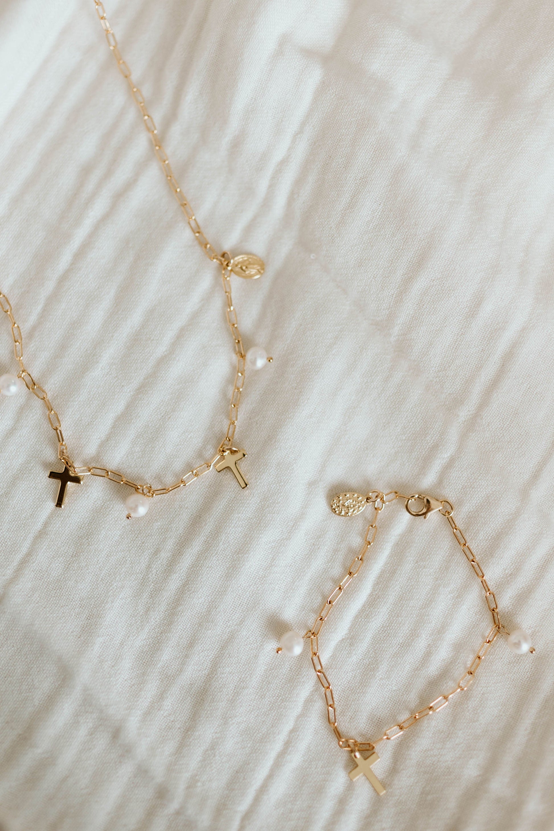 The Full of Grace Bracelet is a delicate fusion of elegance and spirituality. Designed to complement any outfit, this piece serves as a beautiful reminder of faith and grace.