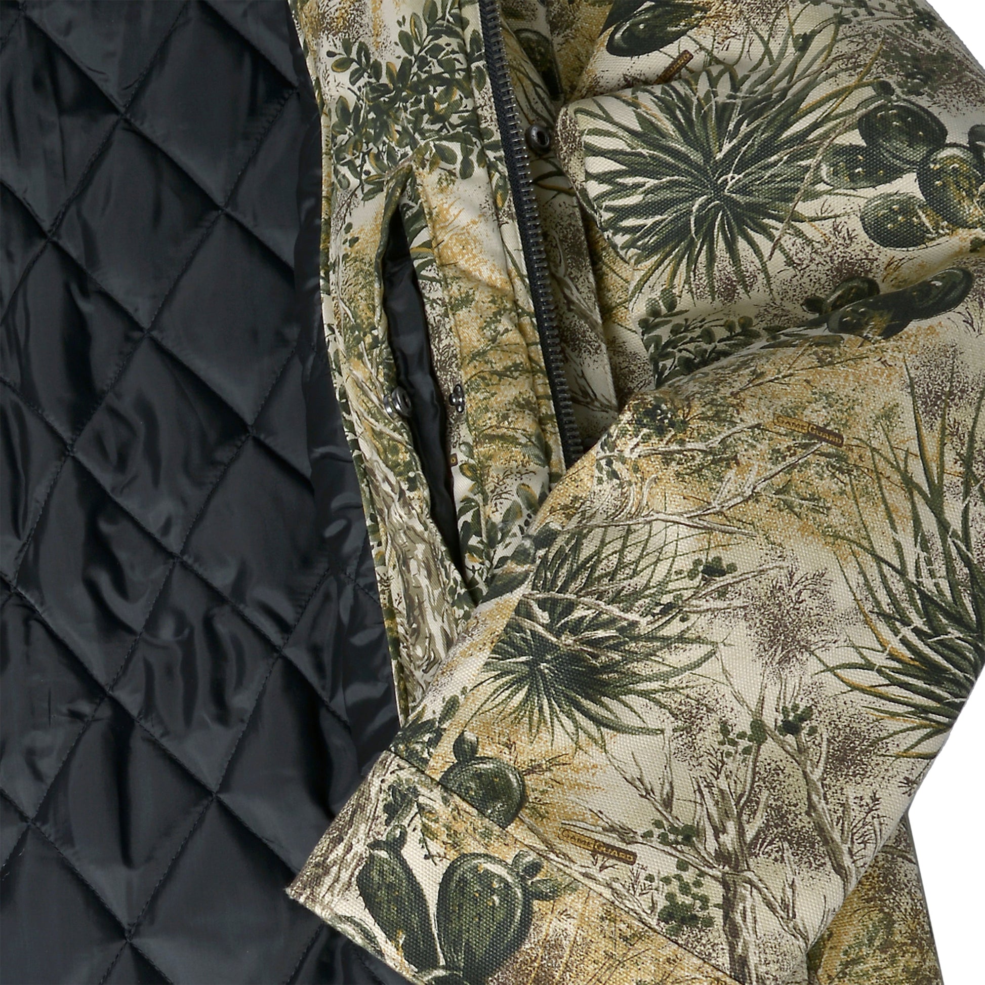 Crafted from rugged cotton canvas, each fiber tells a story of strength found in heritage, the kind passed down through generations of toil and triumph. The diamond-quilted insulation is like the embrace of an old friend, promising warmth as you set out to conquer the day.