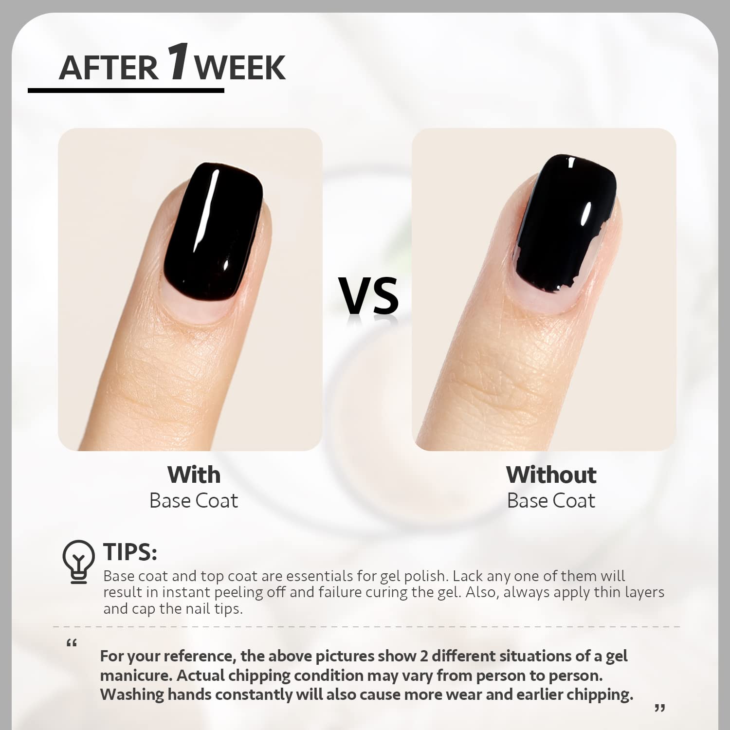 LONG-LASTING:Lightly buff the nail bed to give nail texture for the base coat to cling to for 4 weeks long lasting gel manicure.