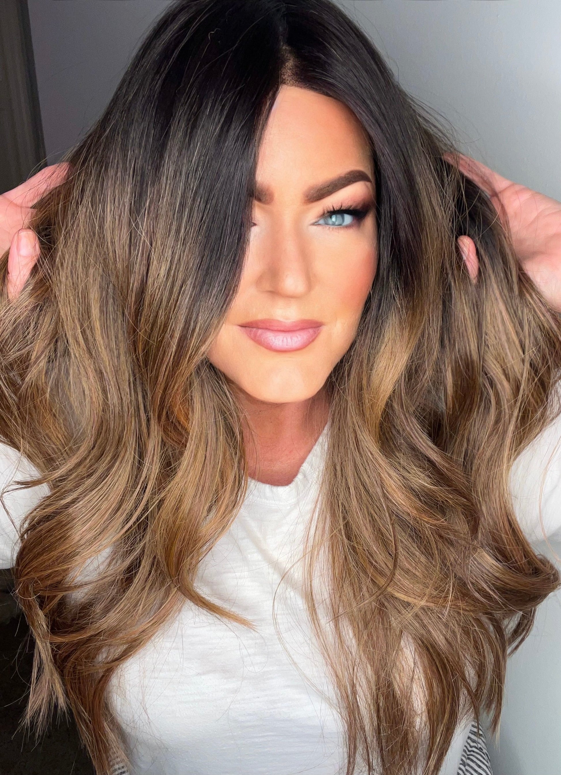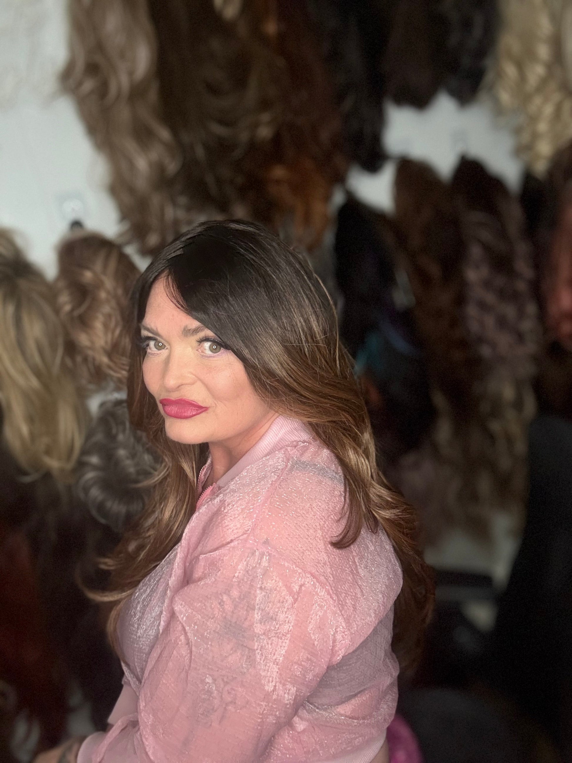 Introducing GIGI Mono - the ultimate luxury choice for a full mono lace front wig. Made with a premium heat resistant Futura synthetic blend and featuring a free part and adjustable straps, this wig offers versatile styling options and a perfect fit for petite to standard cap sizes. With a stunning 25" loose curl, long layered style and beautiful brown balayage with dark roots, GIGI Mono is the perfect choice for a natural and glamorous look.
